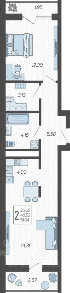 51 м² · Этаж 13 из 19
