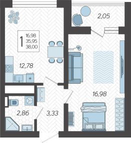 Продаётся 1-комнатная квартира в строящемся доме (Корпус 15), срок сдачи: I-кв. 2026, общей площадью 38.11 кв.м., на 18 этаже. Жилой комлекс ''Кислород'' представляет комплексную застройку, состоящую из 20-ти этажных монолитных домов. Застройщиком спроектированы одно-, двух- и трехкомнатные квартиры. Благоустройство прилагающей территории включает в себя строительство детской и спортивной площадки, а также гостевой автостоянки.