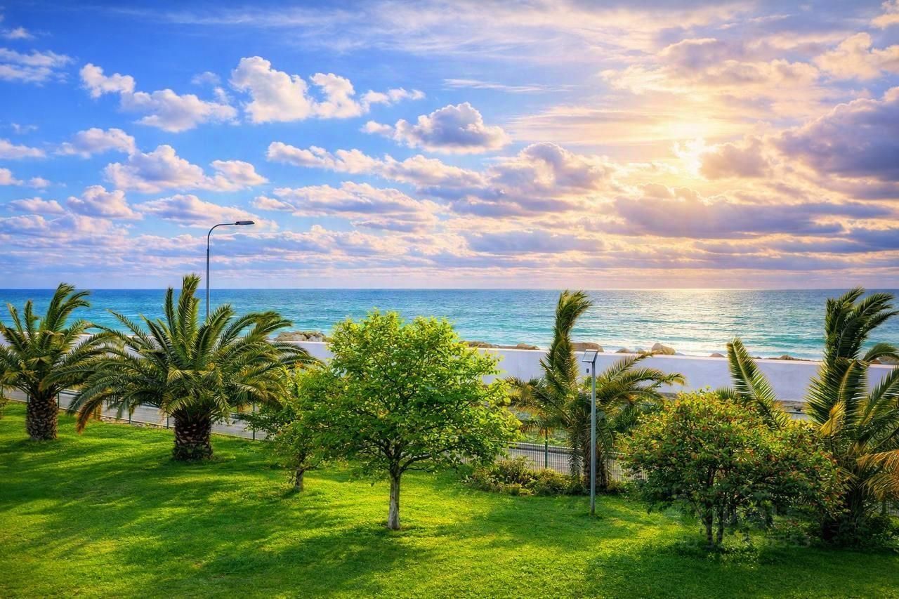 Апартаменты на первой береговой линии в самом центре Сочи Комплекс на территории 4,5 га Бассейн спа рестораны зоны отдыха Апартаменты полностью с ремонтом, мебелью и техникой! По всем вопросам-звоните!