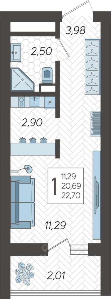 22 м² · Этаж 18 из 19
