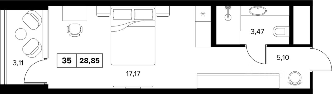 Продаются 1-комнатные апартаменты в строящемся доме (Д.37 А Корпус А), срок сдачи: III-кв. 2028, общей площадью 28.85 кв.м., на 5 этаже.