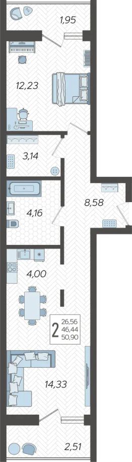 Продаётся 2-комнатная квартира в сданном доме (Корпус 1), срок сдачи: IV-кв. 2024, общей площадью 51.7 кв.м., на 11 этаже. Жилой комлекс ''Кислород'' представляет комплексную застройку, состоящую из 20-ти этажных монолитных домов. Застройщиком спроектированы одно-, двух- и трехкомнатные квартиры. Благоустройство прилагающей территории включает в себя строительство детской и спортивной площадки, а также гостевой автостоянки.