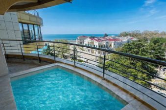 Продаётся стильный двухкомнатный угловой люкс с потрясающим фронтальным панорамным видом на побережье Чёрного моря и террасой.Апартаменты оформлены в современном, изысканном дизайне в сдержанных бежевых тонах. В спальне — кровать king-size, а в просторной гостиной — удобный диван и два мягких кресла. Также предусмотрены две ванные комнаты. Номер полностью укомплектован: халаты, тапочки, косметический набор, набор полотенец, джакузи и душевая кабина, биде.Доходность составляет от 4 миллионов рублей в год! Есть возможность передачи в управление с доходностью 80/20.Звоните, отвечу на все ваши вопросы и организую показ!