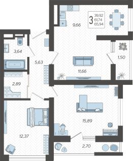 Продаётся 3-комнатная квартира в строящемся доме (Корпус 4), срок сдачи: I-кв. 2026, общей площадью 65.5 кв.м., на 16 этаже. Жилой комлекс ''Кислород'' представляет комплексную застройку, состоящую из 20-ти этажных монолитных домов. Застройщиком спроектированы одно-, двух- и трехкомнатные квартиры. Благоустройство прилагающей территории включает в себя строительство детской и спортивной площадки, а также гостевой автостоянки.