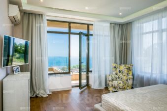 Средиземноморская вилла с панорамным видом на море. Внутреннее пространство спланировано очень гармонично и удобно: шесть изолированных спален, пять санузлов, огромная кухня-гостиная, свой собственный спортзал. Отделка особняка выполнена с использованием дорогостоящих материалов. Обеденный стол, расположенный в гостиной части квартиры, выполнен из агата с обсидианом, лестница отделана мрамором производства Италии. Мягкая мебель от Swan и Vismar, бытовая техника от ведущих мировых брендов.На прилегающей к вилле территории выполнен невероятно красивый ландшафтный дизайн. Непосредственно перед домом располагается большой бассейн с противотоком и джакузи. Благоустроены зоны для отдыха с ротанговой мебелью, барбекю и русской печью. Отдельно домик для проживания обслуживающего персонала, парковочное пространство для трёх автомобилей. Установлены камеры видеонаблюдения.