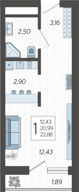 Продаётся студия в строящемся доме (Корпус 14), срок сдачи: I-кв. 2026, общей площадью 23.34 кв.м., на 13 этаже. Жилой комлекс ''Кислород'' представляет комплексную застройку, состоящую из 20-ти этажных монолитных домов. Застройщиком спроектированы одно-, двух- и трехкомнатные квартиры. Благоустройство прилагающей территории включает в себя строительство детской и спортивной площадки, а также гостевой автостоянки.
