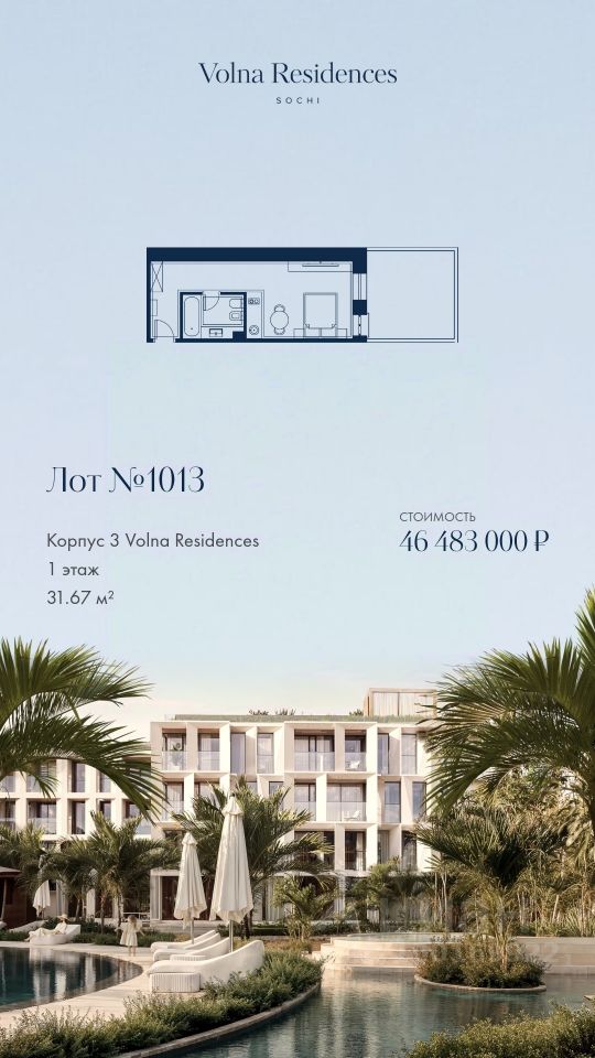 Продаётся 2-комнатная квартира в строящемся доме (Дом 2), срок сдачи: II-кв. 2028, общей площадью 67.69 кв.м., на 1 этаже. Volna Residence - это комплекс для жизни на территории комплекса Volna, объединённый с отелем общей концепцией и инфраструктурой. 3 малоэтажных корпуса на 520 номеров расположены на первой береговой линии и имеют собственный бассейн. Территория комплекса Volna - 7,2 га. Более половины этой территории занимает парк и инфраструктура для жизни и отдыха.