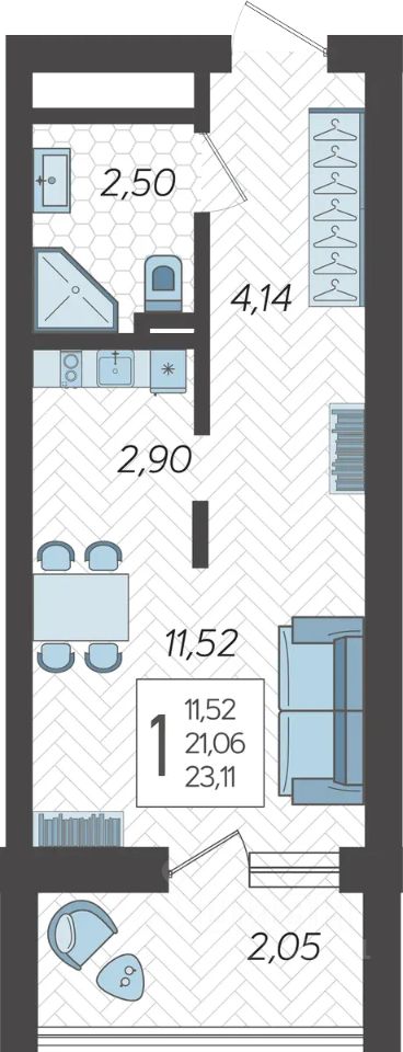23 м² · Этаж 11 из 19