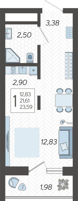 Продаётся студия в сданном доме (Корпус 10), срок сдачи: I-кв. 2024, общей площадью 23.6 кв.м., на 18 этаже. Жилой комлекс ''Кислород'' представляет комплексную застройку, состоящую из 20-ти этажных монолитных домов. Застройщиком спроектированы одно-, двух- и трехкомнатные квартиры. Благоустройство прилагающей территории включает в себя строительство детской и спортивной площадки, а также гостевой автостоянки.