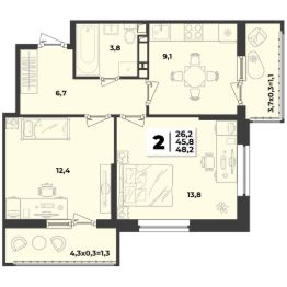 Продаётся 2-комнатная квартира в строящемся доме (Литер 2.1), срок сдачи: IV-кв. 2026, общей площадью 48.2 кв.м., на 2 этаже. Новый жилой комплекс ''Лето'' от застройщика ''ГК Дарстрой'' расположен по адресу город Краснодар, улица Западный Обход.