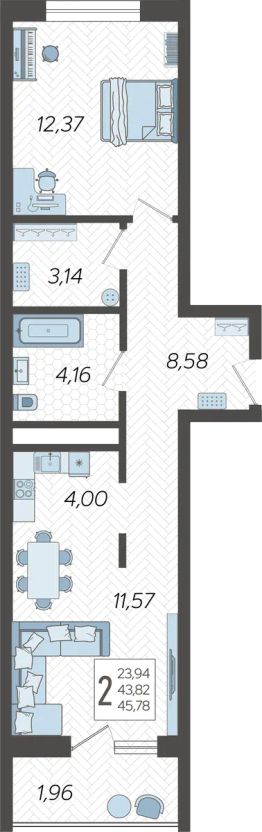 Продаётся 2-комнатная квартира в сданном доме (Корпус 5), срок сдачи: IV-кв. 2024, общей площадью 50.1 кв.м., на 7 этаже. Жилой комлекс ''Кислород'' представляет комплексную застройку, состоящую из 20-ти этажных монолитных домов. Застройщиком спроектированы одно-, двух- и трехкомнатные квартиры. Благоустройство прилагающей территории включает в себя строительство детской и спортивной площадки, а также гостевой автостоянки.