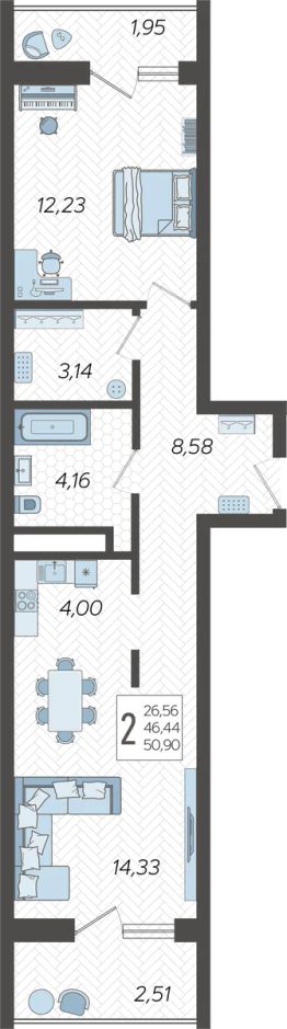 2-комнатные апартаменты располагаются на 6 этаже, а из окон открываются виды на город . Срок сдачи: IV-кв. 2025Flavium—Luciano — воплощение изысканной архитектуры и гармонии с природойДом Flavium—Luciano создан для тех, кто ценит утонченную красоту и безупречное качество. Его фасады словно переносят вас в эпоху древнего Рима, где величие соединено с элегантностью. Плавные линии и текстурированные материалы подчеркивают архитектурное мастерство, а панорамные окна раскрывают виды, достойные живописных полотен.Каждая деталь дома продумана до мелочей. Базовая отделка white box позволяет вам воплотить свою мечту об идеальном интерьере. Для тех, кто предпочитает не думать о мелочах, опционально доступна и чистовая отделка. Просторные лоты от 82 до 146 м² дают возможность обрести уютное пространство для жизни. И нет никаких студий только комфортные апартаменты для ценителей высокого уровня жизни.Для вашего удобства предусмотрен вместительный подземный паркинг, оснащённый мойкой, инновационные инженерные системы дома обеспечивают идеальный микроклимат в любое время года, а качественная звукоизоляция позволит наслаждаться морем, местом, природой, не отвлекаясь на постороннее.Жизнь во Flavium—Luciano это не просто пребывание в очередном комплексе. Это среда, формирующая свой комфортный мир вне суеты.Luciano — мир комфорта, который начинается за порогомИнфраструктура Luciano — это воплощение вашей мечты о современном ритме жизни, где все нужное находится в шаговой доступности.Парковая зона и пляж:Представьте утреннюю прогулку среди тенистых деревьев или вечерний отдых у моря. Собственный пляж в 57 минутах ходьбы станет местом, куда захочется возвращаться снова и снова.Гастрономическое путешествие:Четыре ресторана, каждый из которых предлагает уникальный опыт:•''Галерея'' с изысканными блюдами европейской кухни.•''Adriana'', где средиземноморские шедевры встречаются с паназиатскими акцентами.•''Garden Cafe'' с уютной атмосферой сада.•''Посейдон'' — панорамный ресторан на побережье, который станет вашим любимым местом для романтических вечеров.Акватермальный и спа-комплекс:Погрузитесь в мир релаксации с хаммамом, русской баней и приватными спа-зонами. А современный фитнес-клуб и медицинский центр помогут вам заботиться о здоровье и поддерживать отличную форму.Семейный комфорт:Детский клуб Luciano Kids создан для гармоничного развития вашего ребенка. Это место, где малыши познают мир через творчество, а родители могут расслабиться, зная, что их дети в надежных руках.Luciano — это не просто инфраструктура, это образ жизни, который подчёркивает статус и окружает заботой. Flavium—Luciano ждет вас, чтобы стать вашим домом, вашим миром и вашей историей.