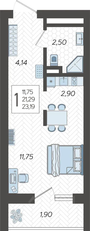 23 м² · Этаж 11 из 19