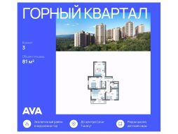 В продаже 3-комнатная квартира площадью 81, расположенная Литер 4 жилого комплекса комфорт+ класса ''Горный квартал''. Комплекс от девелопера AVA находится в Сочи, Хостинского района, в 15 минутах езды от центра города.Отличная транспортная доступность:Остановка маршрутных такси - 5 минут пешком,Барановский виадук - 10 минут на авто,Министерские озера - 2 минуты пешком,Гимназии, детские сады, фитнес-центры, супермаркеты, кинотеатр - 5-10 минут на авто,Ж/Д и автовокзал - 15-20 минут на авто,Адлер - 30 минут на авто,Аэропорт - 45 минут на авто.Аккуратный облик домовЖилой комплекс состоит из пяти корпусов высотой от 10 до 16 этажей. Сдержанные фасады в бежево-серых оттенках выглядят аккуратно и гармонируют с природным окружением, а открытые балконы добавляют облику домов легкости. Контейнеры под кондиционеры встроены в фасады и практически незаметны, благодаря чему дома сохраняют опрятный внешний вид. Комплекс расположен на склоне горы, поэтому из окон квартир на верхних этажах открываются отличные панорамные виды на лес, озеро и город: чем выше этаж, тем выразительнее пейзаж.Двор, где есть место для всехНа внутренней территории комплекса всем будет приятно и интересно проводить время в любой сезон. Здесь есть беседки и гамаки под теневыми навесами, что особенно удобно для отдыха в жаркие или дождливые дни. Для активных жителей предусмотрены спортивные площадки и уличные тренажеры, для детей - игровые площадки из натуральных материалов, а для семей и компаний - зона барбекю. Особое преимущество - кинотеатр под открытым небом: формат редкий для жилых комплексов и особенно ценный для совместного семейного досуга прямо рядом с домом. Во всем дворе - ландшафтное озеленение: высажены разнообразные деревья и кустарники, южные цветы и газоны.Природное окружение и идеальная экологияЛокация особенно понравится тем, кто любит природу и ведет активный образ жизни. Всего в 2 минутах ходьбы находится Нижнее Министерское озеро - отличное место для прогулок и отдыха. Поблизости расположены природные достопримечательности южного побережья, включая Черепашье озеро и дольмены, куда интересно ходить в походы или выезжать на выходные. До общественных и санаторных пляжей можно добраться за 20 минут на автомобиле. Благодаря хвойному лесу и мягкому морскому бризу здесь всегда чистый воздух, а ночами видно звездное небо, что подчеркивает горный характер места и создает редкое ощущение тишины и уюта для Сочи.Дополнительные преимуществаВидовые квартиры с окнами на три стороны света и семейные форматы с тремя спальнями, двумя ванными и отдельной кухней,Наземный паркинг для жителей и гостей на 815 машиномест,На первых этажах домов работают магазины, рестораны и салоны красоты, к которым можно спуститься на лифте,Комфортно не только отдыхать, но и полноценно жить всей семьей: гимназии в 10 минутах езды, удобная дорогая до города, магазины и сервисы поблизости.