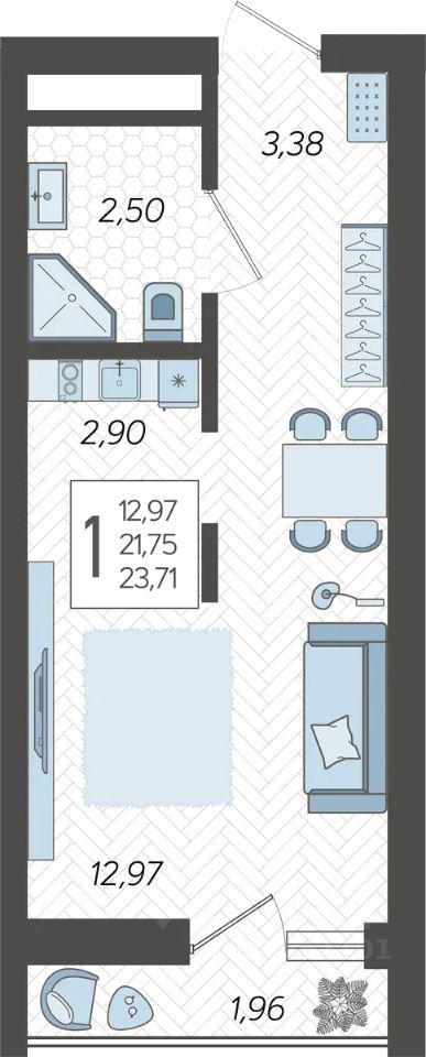 23 м² · Этаж 11 из 19