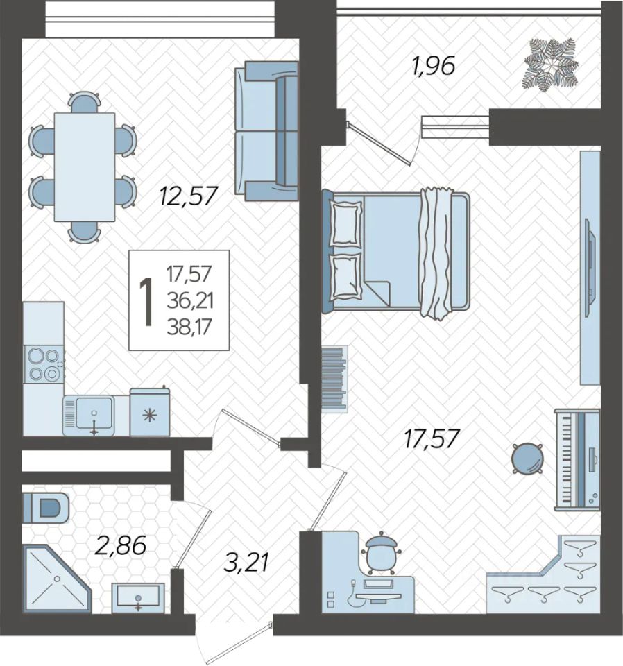38 м² · Этаж 14 из 19