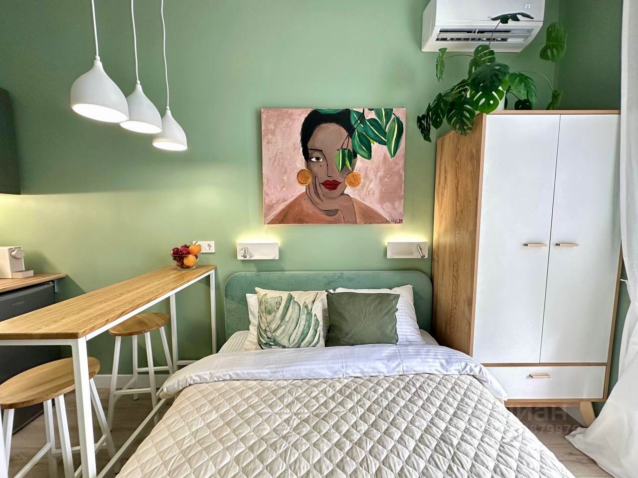Стильная студия с дизайнерским ремонтом в ЖК Курортный у моря Продаётся уютная студия с продуманным дизайнерским ремонтом в современном ЖК Курортный. До моря и пляжа — несколько минут пешком. Интерьер выполнен в актуальных природных оттенках: мягкий зелёный, дерево, светлый текстиль. Пространство зонировано максимально функционально и визуально выглядит просторно. Преимущества: - дизайнерский ремонт, всё продумано до мелочей - полностью меблирована и укомплектована техникой - удобная кухонная зона, обеденное место - комфортная спальная зона с большой кроватью - кондиционер, ТВ, места хранения Светлая, уютная атмосфера Отлично подойдёт как для личного проживания, так и как готовый арендный бизнес — формат востребован для посуточной и долгосрочной аренды. ЖК расположен в курортной зоне с развитой инфраструктурой, высоким спросом и ликвидностью. Заезжай и живи или начинай зарабатывать с первого дня.