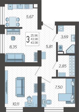 Продаётся 3-комнатная квартира в строящемся доме (Корпус 4), срок сдачи: I-кв. 2026, общей площадью 43.98 кв.м., на 2 этаже. Жилой комлекс ''Кислород'' представляет комплексную застройку, состоящую из 20-ти этажных монолитных домов. Застройщиком спроектированы одно-, двух- и трехкомнатные квартиры. Благоустройство прилагающей территории включает в себя строительство детской и спортивной площадки, а также гостевой автостоянки.