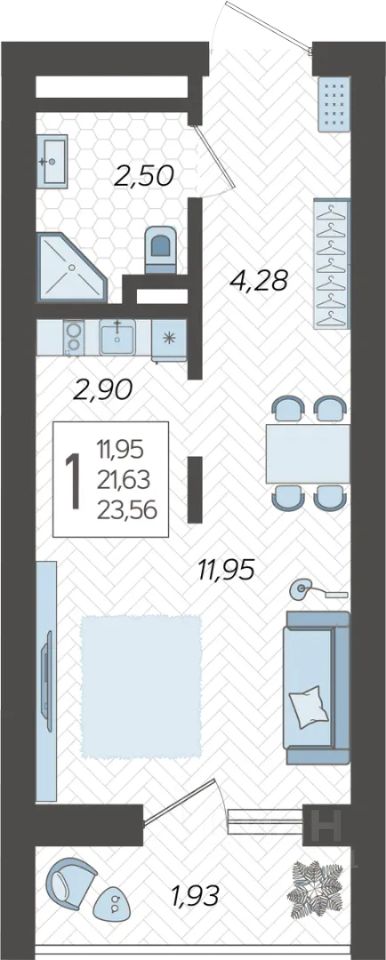 23 м² · Этаж 11 из 19