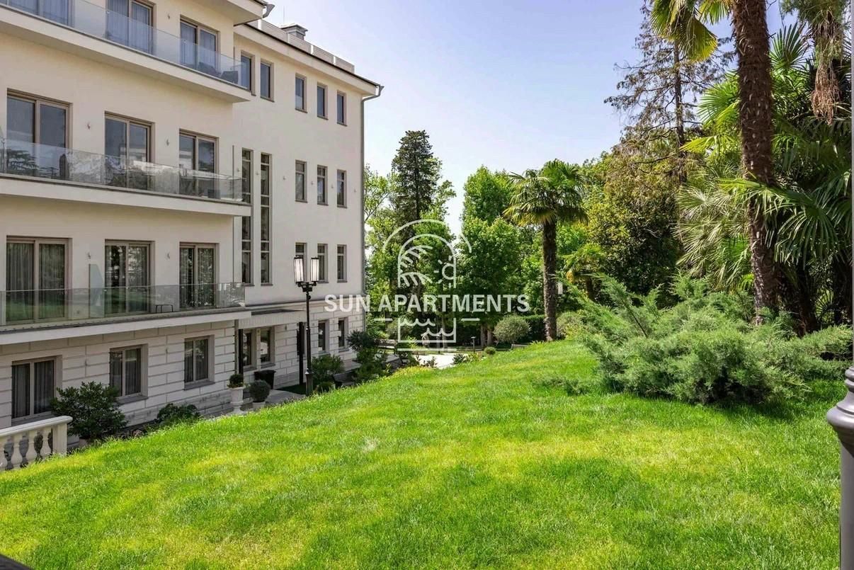 В продаже один из немногих видовых апартаментов в Grand Royal Residences. Апартамент состоит из кухни-гостиной, спальни и детской комнаты, двух санузлов. Выполнен дизайнерский ремонт, продается полностью оборудованным всей техникой и мебелью европейского производства, с постельным бельем и посудой. Комплекс Grand Royal Residences — уникальный, даже в масштабах России, комплекс 5*, расположенный на Черноморской Ривьере в центре Сочи. Он находится на закрытой парковой территории площадью 4 га, образующей камерное пространство. Комплекс имеет специальный тоннель, дающий возможность спускаться на лифте к закрытому пляжу протяженностью 120 м с летним кафе для комфортного отдыха. Исторически это был закрытый пляж пансионата Красмашевский, территория осталась охраняемой даже после закрытия пансионата. В комплексе своя управляющая компания, которая будет заниматься полным обслуживанием территории и инфраструктуры комплекса, а также предоставлять жильцам консьерж-сервис. На территории комплекса будут созданы все условия для идеального отдыха, а именно — парковая территория с тропическим дендропарком фонтаном, и прогулочными зонами, Spa-центр, салон красоты, косметология, медицинские услуги, открытый, а также закрытый бассейны, отдельная зона для отдыха с навесами, шезлонгами и мягкими креслами, спортивные площадки, сквош, гольф-симулятор, а также детская игровая площадка, 2 ресторана, в том числе с панорамным видом на море и летней террасой. Для удобства собственников предоставляются два подземных паркинга на 150 машиномест. На территории комплекса будет возведен resort-отель премиум-класса с рестораном, торговой галереей и первоклассным круглосуточным сервисом, который будет доступен всем собственникам . Застройщик зарекомендовал себя в Сочи такими проектами как Белый Дворец, Морская Симфония 2, Комплекс Лучезарный
