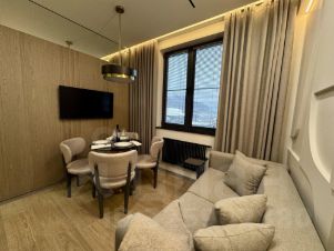 Уютная светлая квартира в лучшем комплексе в Адлере в ЖК ''Триумф!Квартира находится на высоком этаже с панорамным видом на море.Квартира с новом ремонтом, никогда не сдавалась в аренду.Закрытая территория, парковка, СПА центр.Удобно расположен комплекс. До жд вокзала Адлера 1 км, до аэропорта 5 км.10 мин. о Олимпийского парка на автомобиле. В квартире все остается. Полная сумма в оговоре.