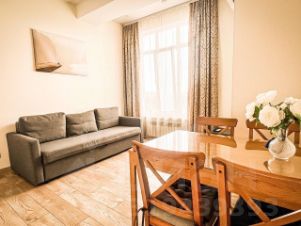 Трехкомнатная резиденция с кухней-гостиной и балконом, а также двумя санузлами Из окон открывается вид во внутренний двор, на бассейны, парки. Высота потолков составляет 3,1 метра. Отделка под ключ.