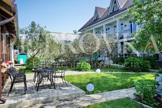 Эксклюзивное предложение.Продается дом с мини отелем ''7 Пальм'' и собственным хозяйством, расположенным на берегу Черного моря, в посёлке Макопсе, Лазаревского района г. Сочи.Удобный асфальтированный подъезд, есть своя парковка для автомобилей.Участок 15 соток утопает в зелени: красивейший цитрусовый сад, фейхоа, персики, инжир, киви, виноградник, яблоки, груши, черешня и свежие овощи с огорода, цветники и пальмы. Все содержится в идеальном порядке, Вы получите истинное эстетическое удовольствие от придомовой территории.На участке располагаются: современный 2-х этажный дом 341,8 м2 с 7 отдельными комфортными номерами с санузлами каждый и оборудованные кондиционером (под крышей на мансарде есть пространство для расширения номерного фонда), гараж, 2012 года постройки,одноэтажный дом 79,3 м2, летняя кухня, современная комфортабельная веранда, кладовка и хоз. постройка.В большом доме в жилой части сделана стильная отделка с дизайнерскими элементами. Гостевые номера оформлены в разных стилях. Коммуникации: центральное отопление и водоснабжение, локальная канализация, электричество 15кВт, есть резервное дизельное отопление.Участок и дома оформлены в собственность. Все документы готовы к сделке.Это редкое предложение для ценителей отдыха вдали от суеты и возможностью вести семейный бизнес в одном из красивейших мест на юге России.Благодатная атмосфера этого места очарует вас.Оно вдохновило на написание многих сценариев, приютило немало творческих людей. Любители занятий йогой и цигуном ощутят природную силу места и чистейшего горного воздуха.На уютной и современно летней веранде можно устраивать дружеские посиделки с играми, шашлыками и дегустацией вина и чачи с собственного виноградника. Вечерами Вы будете любоваться закатами с бокалом домашнего вина.А утром наслаждаться ароматным кофе на балконе с видом на горы.Отель ''7 Пальм'' стал хорошим и крепким брендом, имеет свою постоянную клиентуру, а также высокие оценки на Яндекс и Google (приложить фото), имеет свои страницы в соцсетях, а также исключительно положительные отзывы оценка на Яндекс.Карты 4,7. Дорога до пляжа проходит вдоль территории пансионата с кипарисами и магнолиями, с потрясающими ароматами. Эта прогулка займет 10 мин. пешком (3 мин на машине).К Вашим услугам благоустроенный современный пляж с зонтиками, шезлонгами, раздевалками и вкусными кафе с хорошей кухней, где Вы не встретите толпы туристов, как на других пляжах Сочинского побережья.Дом располагается на возвышенности, всевозможные природные катаклизмы с потопами и селями с гор проходят мимо, здесь всегда сухо и уютно.Рядом пансионат ''Макопсе'', бассейн, магазины, детские площадки, пляж, столовая, бары, рестораны.В районе много живописных водопадов и примечательных мест.Расстояние до курорта Лазаревское — 15 км.Вы влюбитесь в это место сразу, как только попадете сюда!Арт. 110831439
