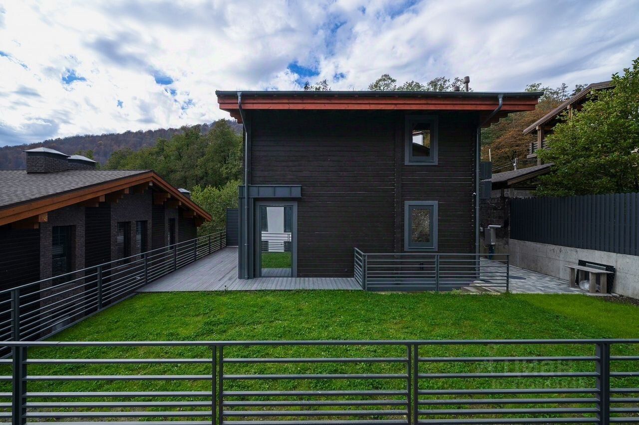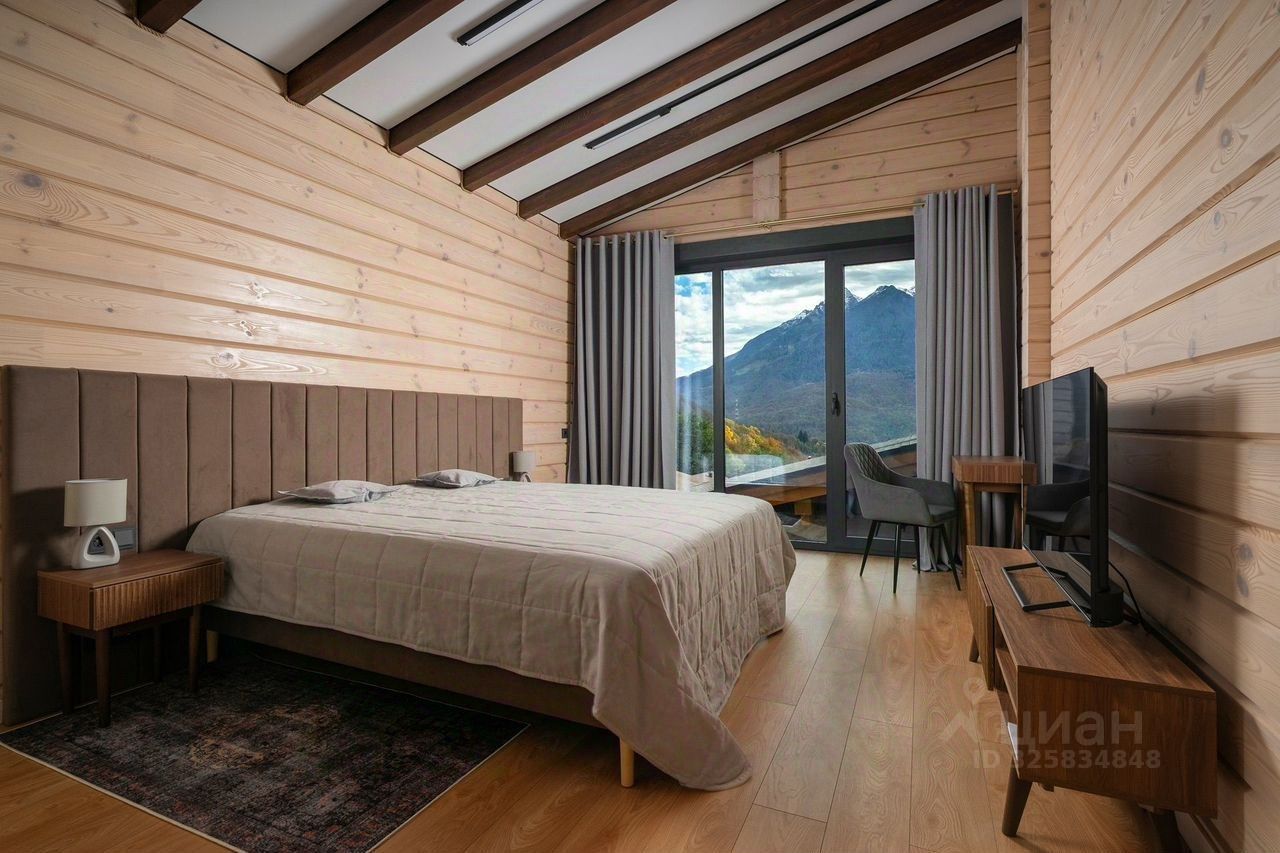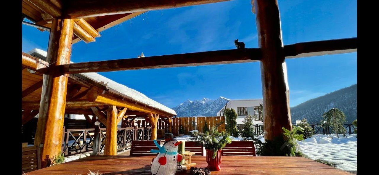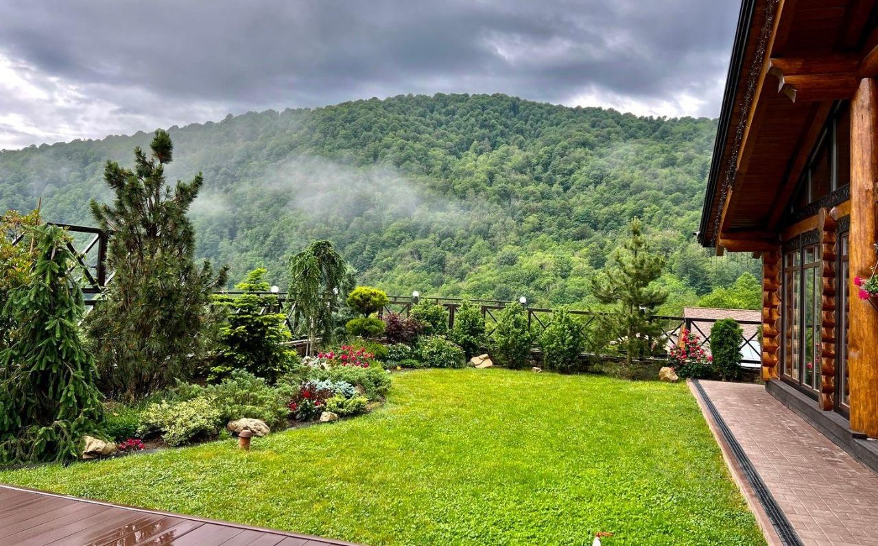 Видовой дом располагается в тихом и приватном месте, и буквально утопает в окружении реликтового леса с панорамным видом на гору Аибга, под аккомпанемент шума горной реки Бешенка, протекающей по границе участка, в которой можно освежится после сауны. Чистейший воздух, горные виды, хвойный сад - все это настоящий эстетический экстаз, который не оставит вас равнодушным. Вся эта уникальная атмосфера находится совсем близко к горнолыжным курортам красная поляна, роза хутор, газпром, буквально в 10 минутах на автомобиле. 1-й этаж: кухня, гостиная с камином, сауна, душ, комната отдыха, сан. Узел, спальня с камином и диваном, комната с русским бильярдом, два выхода во двор 2-й этаж: 3 спальни с двуспальными кроватями со своим сан. узлами и балконами, 2 комнаты с двумя односпальными кроватями, общий сан. узел с душем 3-й этаж: большой зал с панорамными окнами с видом на горы, в зале выделена игровая зона с настольным теннисом и настольным футболом На территории располагается большая беседка с мангальной зоной и казаном, где вы можете уютно посидеть в большой компании, а также бассейн летний, свой пруд с родниковой водой и красивый сад. В 5 минутах от дома находится множество магазинов, известных ресторанов, таких как яблоки печем, дом лесника, Ачишхо, а также бани, spa центры, ретриты и многое другое.