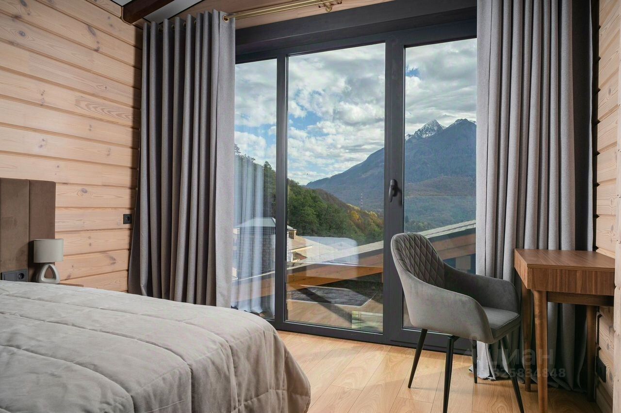 Предлагается к продаже двухэтажный коттедж, уютное гнездышко для тех, чье сердце принадлежит горам. Этот дом, утопающий в зелени, открывает из своих окон и с уютной террасы вдохновляющий вид на величественные хребты, которые меняют свои краски в лучах восходящего солнца. Здесь каждый день начинается с чистого горного воздуха и ощущения безмятежности. Коттедж создан для комфортной жизни и активного отдыха. На первом этаже вас встречает просторная кухня-гостиная, объединенная с террасой, и уютная спальня. Второй этаж отдан под две изолированные спальни, каждая с видом на завораживающие горные пейзажи. Современное оснащение включает кондиционеры в каждой комнате, умные телевизоры и скоростной интернет. Особой гордостью является теплый подземный гараж на два автомобиля со стойкой для горных лыж. Локация дома — мечта для любителей природы и спорта. Подъемники ведущих курортов — Эсто-Садок, Газпром, Роза Хутор — находятся всего в десяти-пятнадцати минутах езды. Рядом пролегают трекинговые маршруты, ведущие к купели, дольменам и на гору Ачишхо. При этом в шаговой доступности есть вся необходимая инфраструктура: школа, остановки, рестораны и спа-центры. Этот уютный и продуманный дом продается напрямую **от собственника** и полностью **без обременений**. Он **идеально для отдыха** активной семьей или компанией друзей, желающих покорять склоны и наслаждаться природой, и в то же время является надежным активом, **идеально для инвестиций** в перспективный горнолыжный регион. Приобрести это горное убежище **можно в ипотеку** на выгодных условиях. **Звоните и записывайтесь на показ**, чтобы ощутить атмосферу этого места, оценить удобство планировки и представить, как ваша жизнь наполняется красками гор и адреналином спортивных побед.