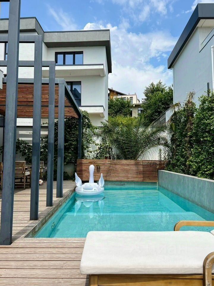 В живописном центре Сочи предлагается к продаже уютный трехэтажный дом площадью 178 м², гармонично сочетающий современный комфорт с очарованием частной жизни. Расположенный на ухоженном участке 4 сотки, этот дом создает атмосферу приватного семейного гнездыша, где каждая деталь продумана для комфортного проживания. **Архитектура пространства** Цокольный уровень встречает гостей просторной кухней и светлой гостиной, объединенной со спальной зоной. Выход на террасу создает плавный переход между интерьером и окружающим ландшафтом. На втором этаже уютная кухня-гостиная с выходом на просторную террасу становится идеальным местом для наблюдения за бассейном и окрестностями. Третий уровень предлагает три изолированные спальни, обеспечивающие приватный отдых для всех членов семьи. **Благоустройство территории** Мангальная зона с обеденной площадкой превращает участок в идеальное пространство для семейных праздников и дружеских встреч. Продуманная система центральных коммуникаций и собственная котельная гарантируют бесперебойное функционирование дома в любое время года. **Окружение и инфраструктура** Район отличается благоприятной экологической обстановкой и панорамными видами на горные склоны. Развитая инфраструктура включает магазины повседневного спроса и остановку общественного транспорта в шаговой доступности. Парковка на два автомобиля решает вопрос с размещением транспорта. **Транспортная доступность** Удачное расположение обеспечивает быструю связь с основными объектами города — всего 10-15 минут на автомобиле отделяют вас от морского побережья и центральных достопримечательностей Сочи. Этот дом станет идеальным решением для тех, кто стремится к гармонии городского комфорта и природного уединения. Приглашаем на персональный просмотр этой жемчужины сочинской недвижимости — вашего будущего семейного гнездыша в самом сердце курортной столицы.
