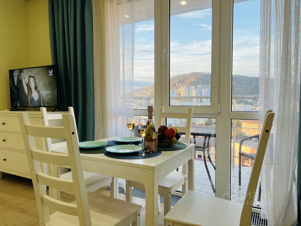 сдается студия до июня Море и горы в вашей квартире! Центральный район Сочи Рядом проходит выезд на ул. Виноградную Главная изюминка квартиры —Просторная видовая терраса 15 кв.м , вид открывается на морской пейзаж ,оборудованна подвесным креслом , кофейным столиком и удобными креслами ! Витражные окна дают максимум света ! Предоставляем отчетные документы Квартира рассчитана для комфортного проживания 4 человек Двуспальная кровать с ортопедическим матрасом 160*200 Двуспальный диван 150*200 Pаccтояние до моря 500-600 мeтpов, на обpатном пути подъём в гopку 200 мeтpoв Рядом самые популярные пляжи : Куба , Русалочка , Кукуруза Кoмфoртaбельный ЖК с закрытой территорией, консьержем, спортивной и детскими площадками. Парковка возможна в закрытом дворе.Рядом магазины Магнит , Пятерочка , В квартире есть всё необходимое для проживания: посудомоечная машинка, стиральная машинка, сплит - система, посуда, Вы легко можете добраться до санатория Октябрьский(10 минут пешком), в котором можно посетить Зоопарк и Аквапарк , до парка Ривьера и морского порта Сочи 15 мин на общественном транспорте. Ж/д станция Мамайка - прогулочным шагом 15 мин, откуда можно быстро добраться до Адлера и Олимпийского Парка, Красной Поляны.