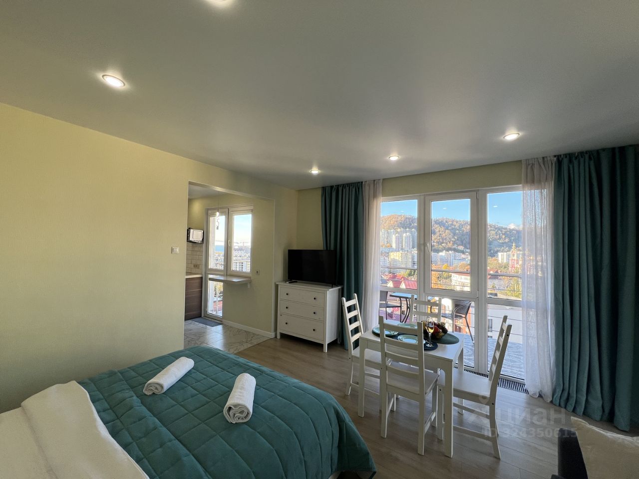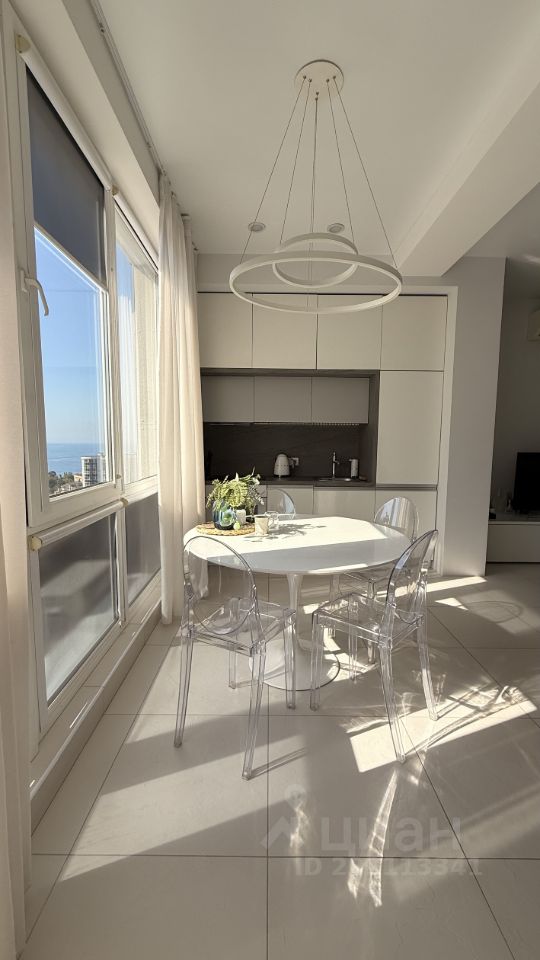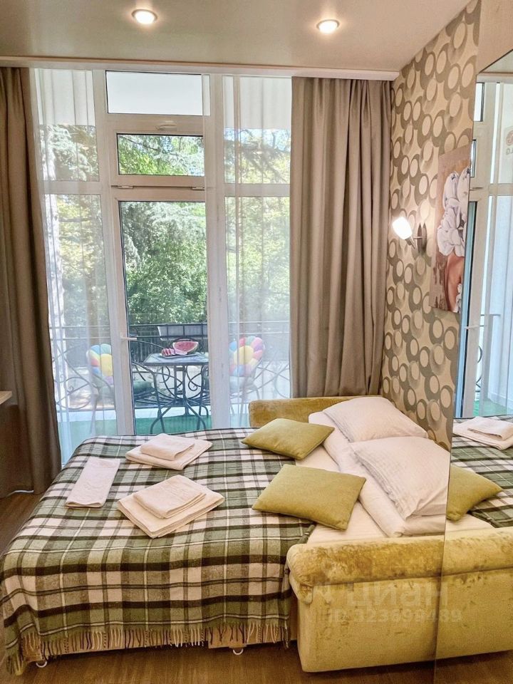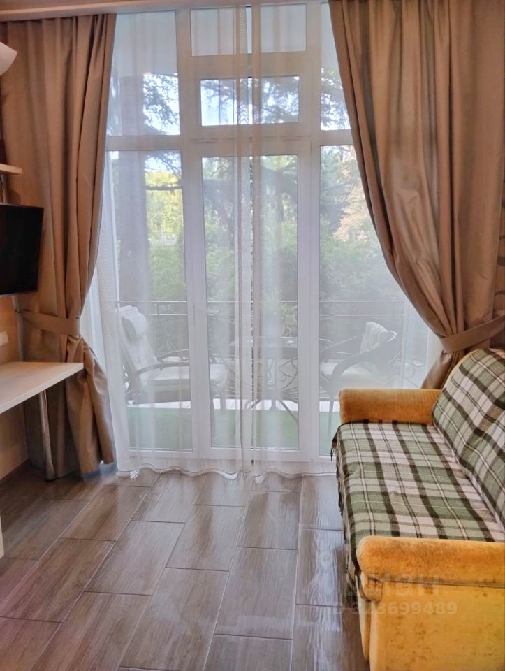 В курортном городке, у самого моря , сдаётся видовая студия, с панорамными окнами в пол, с видом на море, горы и санаторий Знание. Сдаётся до июня. Далее посуточно до октября.