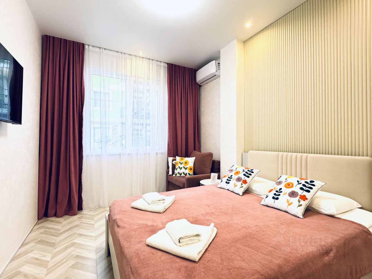 Сдаются апартаменты с октября месяца по май 2026 г. Возможно на несколько месяцев - по запросу Дизайнерский ремонт , все фотографии соответствуют. Трехкомнатные апартаменты с двумя изолированными спальнями в ЖК Светлана-Парк, площадью 75 кв. м., расположенные на 5 этаже. Дизайнерский интерьер с использованием натуральных материалов создает уютную стильную атмосферу. Размещение до 4 человек, апартаменты укомплектованы всем необходимым для комфортного отдыха: - Просторная кухня с варочной поверхностью, встроенным духовым шкафом, вместительным холодильником, микроволновой печью, посудомоечной машиной, капсульной кофемашиной, посудой и всем необходимым для приготовления любимых блюд Спальня 1 Двуспальная кровать с ортопедическим матрасом (1600 *2000) и телевизором Спальня 2 2 односпальные кровати с ортопедическим матрасом и рабочим столиком, по запросу могут соединяться в двуспальную кровать (1600 *2000) Кухня-гостиная Раскладывающийся диван (1400 *2000) -Электронные кодовые замки не нужно брать ключи с собой на пляж и переживать за их потерю -Море в 4-х минутах пешком - Качественное постельное белье - Wi-Fi - Кондиционеры в каждой комнате с функцией охлаждения и обогрева - Просторная ванная комната с набором белоснежных хлопковых полотенец - Стиральная машина в ванной с функцией сушки, гладильные принадлежности, фен, утюг - Панорамные окна - Просторный балкон с креслами-шезлонгами для отдыха РАСПОЛОЖЕНИЕ: ЖК Светлана-Парк находится в самом сердце курортного города! Расстояние до моря 250 метров,5 минут пешком. В радиусе 1 км расположены: Зимний Театр, КЗ Фестивальный, парк Ривьера, парк Дендрарий, парк им.Фрунзе, Морской Порт, Центральная набережная. Рядом расположены лучшие рестораны и кафе города. Охраняемая территория, видеонаблюдение, служба консьержей. Расстояние до железнодорожного вокзала Сочи составляет 4 км, а до международного аэропорта Сочи 25 км.