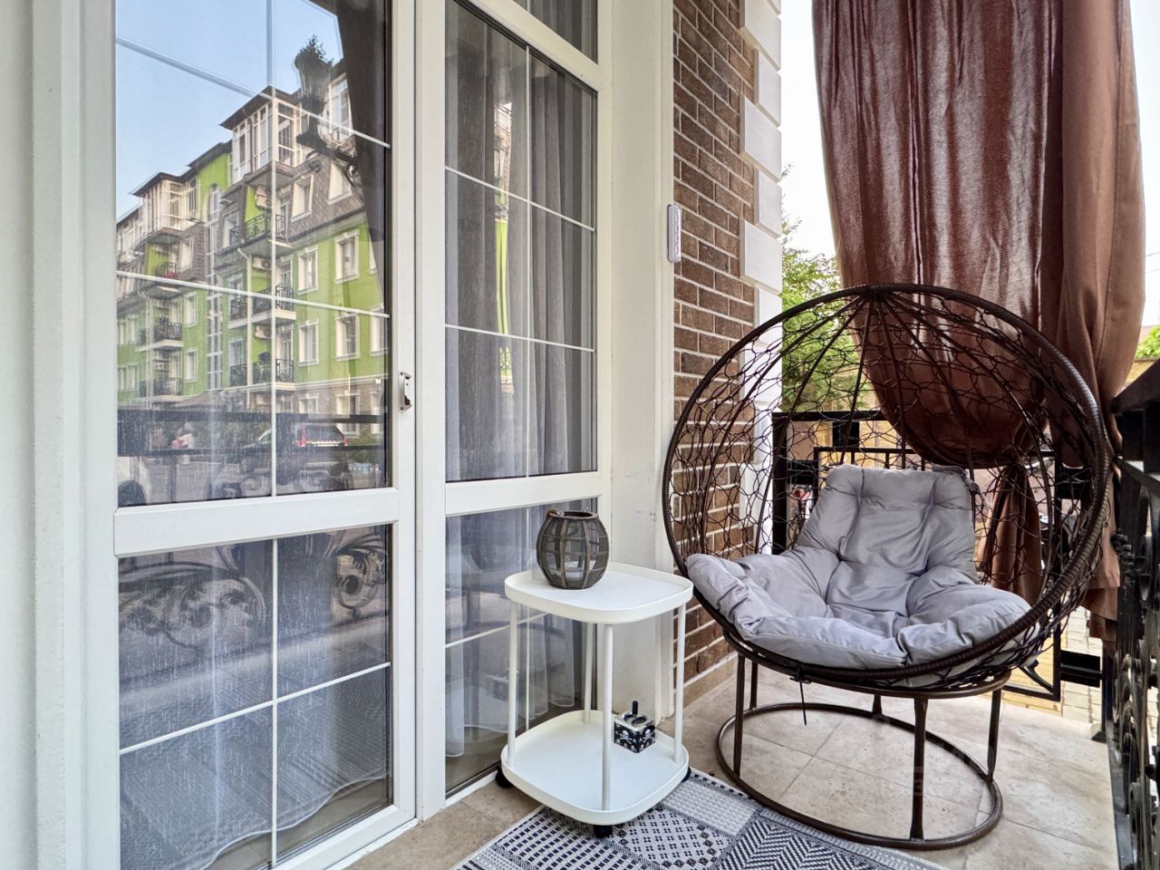 Новая укомплектованная квартира в Сочи с комфортным спальным местом и большим телевизором. Центральный Сочи, ул. Санаторная, 46 (м-н Новый Сочи). 4 этаж (лифт). Парковка на территории жилого комплекса, детская площадка, магазин, кофейня. Район великолепный спокойный и в то же время близко до ЖД вокзала, морского порта и центральной набережной на машине или общественном транспорте, остановка прямо у дома, магазины рядом. Дом окружен зеленью и цветами. Уютная и чистая квартира. Есть всё, что необходимо для комфортного проживания: интернет, большой TV, холодильник, плита и духовной шкаф, стиральная машина, микроволновая печь, кондиционер, посуда, столовые приборы. Шкафы, чтобы уместить все вещи. Большой комфортный диван-кровать и на отделённой лоджии раскладной диван. Обеденная зона. Отопление от газа - тёплый пол (низкая стоимость коммунальных платежей и можно включать/выключать/регулировать, как захотите). Вид из окна во двор. В подъезде есть выход на балкон с видом на обратную сторону дома - на лесопарковую зону. Коммунальные платежи оплачиваются дополнительно. При заселении беру гарантийный залог, который возвращаю при выселении. Сдаю на срок от 6 месяцев (на короткий срок менее 6 месяцев сдаю не всегда - нужно обсуждать по телефону).
