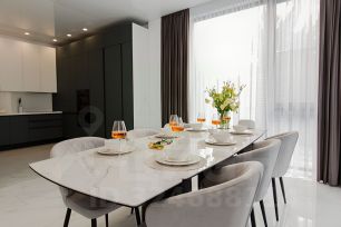 Сдаю дом в стиле high-tech с панорамным видом на море!Площадь - 259 кв.м. Площадь участка - 4 соткиКоличество гостей - 7Количество спальных комнат - 3Цокольный этаж: русская баня, душевая, холл с лежаками, комната для отдыха и игр (мини-футбол, консоль X-Box)1-й этаж: кухня-гостиная с выходом к теплому бассейну с подсветкой и панорамным видом на море, есть санузел с душем2-й этаж: две спальни с двуспальными кроватями и выходами на террасу, санузел с душем и мастер-спальня со своим санузлом с ванной, выходом на террасу и панорамным видом на море В доме есть Wi-Fi, телевизоры, кондиционеры, оборудованная кухня, холодильник, плита, духовой шкаф, микроволновая печь, посудомоечная машина, кофе машина, тостер, чайник, стиральная машина, фен, утюг, гладильная доска, постельные принадлежности, полотенца и шапочки для бани На территории выполнен ландшафтный дизайн, бассейн с подогревом (4*6 метров) и подсветкой, есть круглый стол с встроенным мангалом, теннисный стол, качели, за домом установлена шведская стенка, где можно позаниматься спортом на открытом воздухе.Удобное расположение, до ближайшего пляжа 4,8 км, до магазина 2,3 км, до центра Сочи 25 минут на машине, 30 минут до Аэропорта и центра Адлера, до Красной Поляны можно доехать за 1 час.Оборудованная парковка на территорииСтоимость варьируется от выбранного периода проживания .Предоплата за 1 месяцЗалог 350 000 ₽