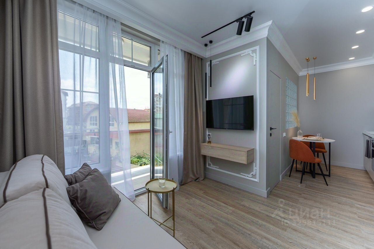 Студия укомплектована всем необходимым для комфортного проживания. С октября по май арннда за квартиру в месяц будет 45.000 . При условии длительного проживания не менее трех месяцев. С 1 мая до 1 октября оплата 60.000 тысяч. Можно круглогодично проживать за 50.000 в месяц. До Олимпийской набережной 25 минут пешей прогулки.Удобная транспортная развязка во все направления города. До моря на автобусе от остановки Зорька 10 -15 минут. Рядом в 5 минутах от дома сетевые сстудимагазины Магнит и Пятерочка. Залог обязателен, можно поделить на 2 раза. Заключается договор , в нем мы прописываем все договоренности. Курение и размещение с животными в квартире не разрешается.