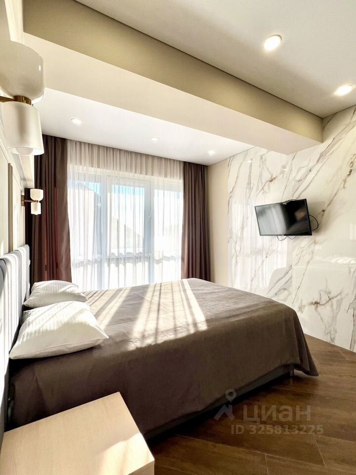 Сдам прекрасную студию в центре Сочи до 1 мая 2026 года. В студии выполнен новый ремонт, есть все для комфортного отдыха. Спальная зона: 2х спальная кровать Аsсоnа с удобным высоким матрасом , одеялом и подушками фирмы Аsсоnа, постельное бельё и индивидуальным освещением. Кухня оборудована кухонным гарнитуром, включающим: варочную панель, вытяжку, двухкамерный встроенный холодильник, микроволновую печь, чайник. Имеется вся необходимая посуда, столовые приборы. Ванная комната : душ, туалет, стиральная машина, раковина со шкафом и зеркалом, фен. В коридоре: зеркало с подсветкой, гардеробная с полками, ящиками и вешалками . В студии также есть кондиционер, сушилка для белья , утюг , пылесос, большой телевизор ( оплаченные приложения Кинопоиск, Иви, Окко), умная колонка с Алисой, интернет, Wi-Fi. Студия идеально подходит парам для романтического и комфортного отдыха . Гостям предоставляется: постельное белье, полотенца, жидкое мыло, средство для мытья посуды, туалетная бумага, ватные диски, ватные палочки, стиральный порошок, ложка для обуви. Для бронирования нужен паспорт Депозит 40000? (возвратный после осмотра студии при выезде) С животными не размещаем Забронируйте прямо сейчас или добавьте объявление в избранное, чтобы не потерять Инфраструктура: Центр города, до Курортного проспекта 10 минут пешком, до моря и Центральной набережной 17 минут пешком. До ближайших магазинов 5-7 минут. Выезд на дублер Курортного проспекта: удобно по нему добираться до Адлера, аэропорта, Красной поляны. Рядом автобусная остановка. Маршрут номер 13, 14. Магнит, Алкотека, WILDBERRIES, Ozon, Яндекс маркет, СДЭК и многое другое. В пешей доступности Зимний Театр, Фестивальный, Органный зал, Морской порт, Южный Молл, огромное количество парков, фонтанов, прогулочных зон, ресторанов, кафе, столовых.
