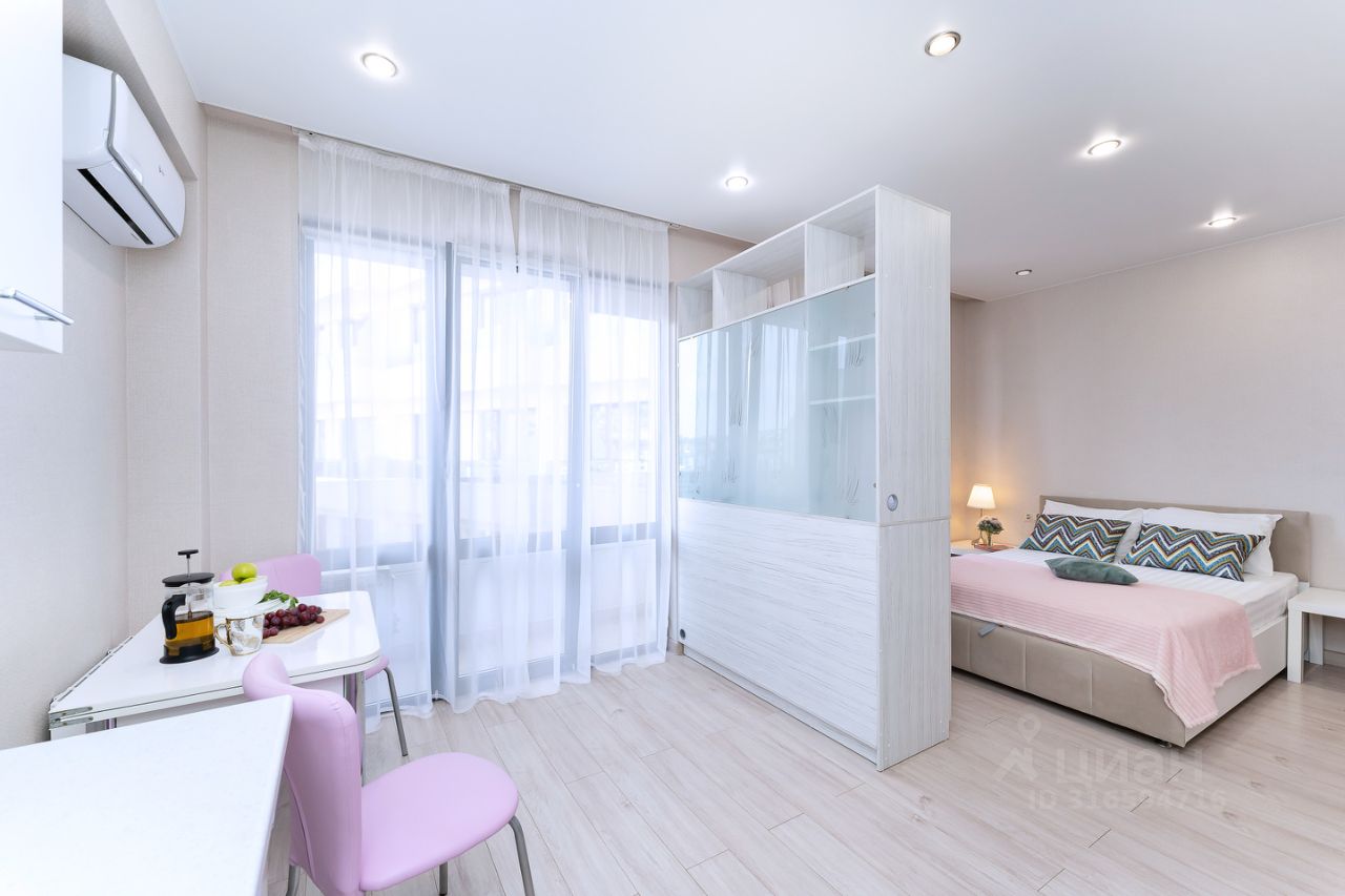 Доброго времени суток! Рада представить вам уютную НОВУЮ квартиру-студию с дизайнерским ремонтом в новом комплексе ЖК ''Летний. УДОБНОЕ РАСПОЛОЖЕНИЕ: • Комплекс расположен в окружении Сочинского Национального парка, со своей большой широкой уютной набережной горной реки Кудепста в окружении гор. • Дом окружен зеленым массивом, воздух всегда чистый и свежий. • В комплексе оборудованы множество детских площадок. • До моря на авто всего 5 минут! Пешком 25 мин по ровной дороге! Пляжи:Кудепста, Робинзон, Автомобилист, Бургас. • Магазины рядом: Магнит, Пятерочка, Ozon, WB. Столовые, кофейни и булочные. • Остановка находится возле комплекса, до моря ходит каждые 10-15 мин. ДЛЯ ВАШЕГО КОМФОРТА В КВАРТИРЕ ЕСТЬ ВСЕ НЕОБХОДИМОЕ: • Спальные места: • Полутороспальный диван • Двуспальная кровать класса Комфорт. • Для уюта и удобства: • Кондиционер, шкаф для одежды, сушилка. • Телевизор (основные телеканалы, Smart-TV). • Wi-Fi для работы и отдыха. • Кухня: • Варочная панель, микроволновка, холодильник, электрический чайник. • Полный комплект посуды и столовых приборов. • Ванная комната: • Душевая кабина • Стиральная машина, фен, полотенца и постельное бельё. ОТЛИЧНАЯ ТРАНСПОРТНАЯ ДОСТУПНОСТЬ: • 15 минут на авто до жд вокзала Адлер • 20 минут на авто до аэропорта и Олимпийского парка