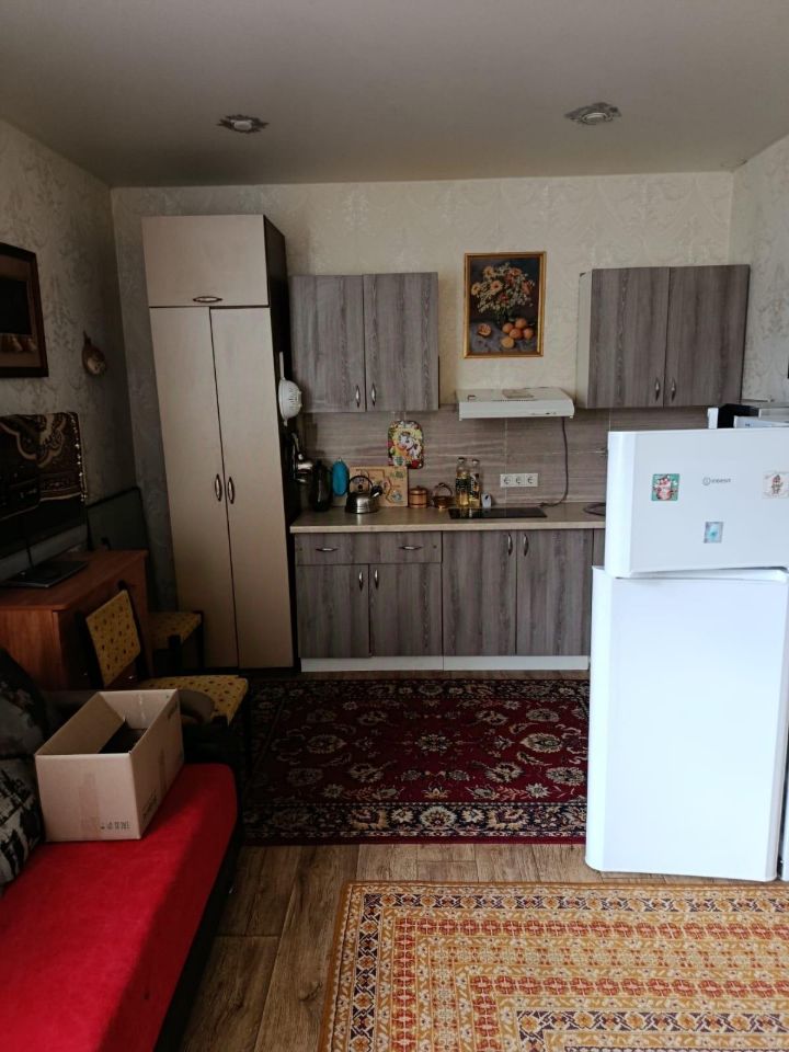 Сдается уютная студия на 8 этаже. В квартире выполнен косметический ремонт. Просторная кухня оборудована необходимой техникой, включая холодильник, микроволновку и плиту. В комнате установлен телевизор и шкафы для хранения вещей. Все для жизни имеется. Заходи и живи. Санузел совмещенный, оснащен всей сантехникой. Из окон открывается вид на тихий двор, где есть открытая парковка. В квартире запрещено курение и проживание с животными, но можно с детьми. Есть балкон. Лифта нет. Собственник ! Риелторов не беспокоить. Оплата за все коммунальные услуги.