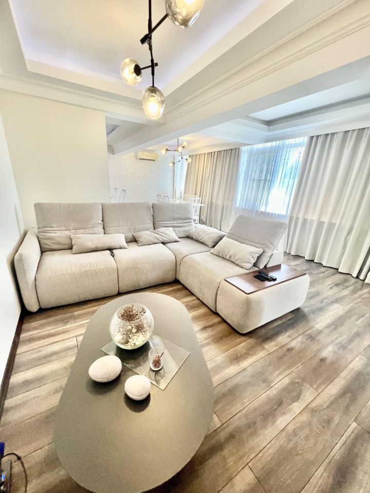 Жилой комплекс бизнес класса ''123''. Уютная квартира после качественного дизайнерского ремонта. Гостиная совмещена с кухней, 2 спальни,кабинет, совмещённый санузел с ванной. Дорогая мебель и бытовая техника. Всё в идеальном состоянии. Кондиционеры. Презентабельная входная группа. Отличная инфраструктура. Показы оперативно в любое удобное для ВАС время. Сергей