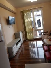 Двухкомнатные апартаменты 42 кв. м. в ЖК Green Palace с тёплым бассейном.Современный ремонт, две изолированных комнаты, просторная кухня, уютный балкон с приятной тенью и видом на зелень. Спальные места: двуспальная кровать и удобный раскладной диван.Аренда помесячно до мая. Арендная плата 55000 рублей + коммунальные. Страховой депозит 30 000 рублей. Комиссия 5000 рубКомплектация:- телевизор, - 2 сплит системы, - стиральная машинка, - холодильник, - микроволновая печь, - варочная панель, - электрический чайник,- посудомоечная машина,- тостер,- фен, утюг, гладильная доска- wi-fiИнфраструктура комплекса:Комплекс Green Palace состоит из современных домов в стиле хайтек. Доступна закрытая территория с 4 бассейнами, 2 круглогодично тёплых с температурой воды +30, игровыми и спортивными площадками, прогулочной зоной отдыха с беседками. Бесплатный wi-fi в апартаментах и на территории ЖК Green Palace.Бесплатная парковка у дома. Территория охраняется. Видеонаблюдение. Чисто и порядок. Можно арендовать баню с мангальной зоной и купелью на территории.О районе:До центра Сочи и моря пешком 30 минут, удобнее добираться на такси или на автобусе 14, 13, что займет 15 минут езды. Магазины, остановка общественного транспорта рядом. Зимний театр, пляж Приморский 3 км.Идеально подходит парам, семьям с 1 и 2 детьми.Предоплата за 1 месяцЗалог 30 000 ₽