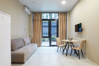 Сдается уютная студия с евроремонтом в современном доме в Сочи, микрорайон Мамайка.Закрытая территория, детская площадка на территории. Квартира обставлена мебелью и полностью готова к проживанию. В комнате и на кухне есть вся необходимая мебель, создающая комфортную обстановку. В ванной комнате установлена душевая кабина. Из техники в вашем распоряжении кофемашина, кондиционер, холодильник, телевизор и стиральная машина. Отопление - теплые полы. Из окон открывается вид на улицу и речку. До моря 2- 3 минуты пешком, по ровной дороге.Дом в отличном состоянии, оборудован двумя пассажирскими лифтами и имеет пандус для удобства передвижения. Рядом три круглогодичных пляжа, множество кафе и магазинов. Возможно проживание менее месяца. Свободные даты с 12 января до конца мая.Предоплата за 1 месяцЗалог 15 000 ₽