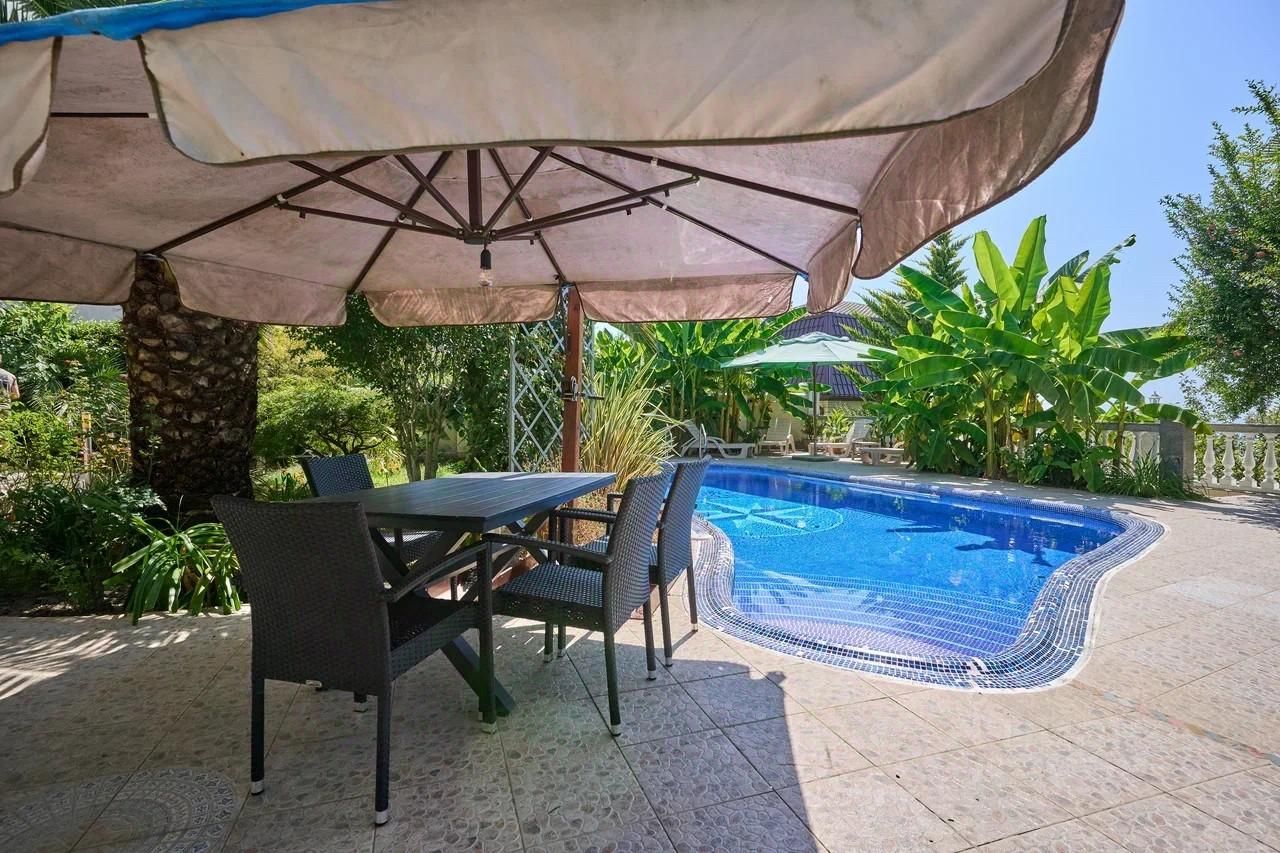 На территории участка есть парковка на 3 авто, зона с мангалом, отдельная кухонная зона, собственный подогреваемый бассейн.
