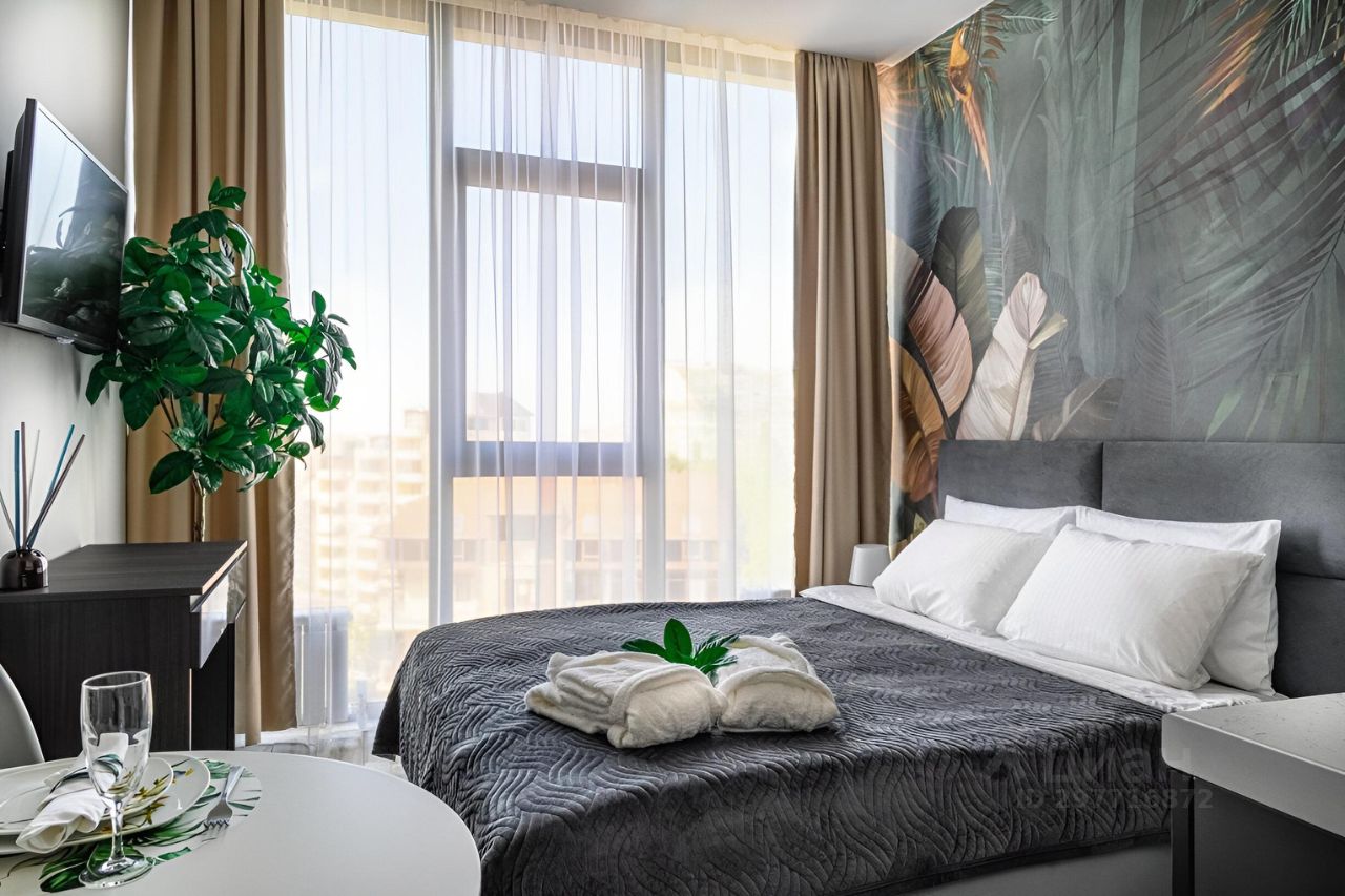 Без комиссии от собственника!!! Сдается от одного месяца до мая ! Красивая студия с видом на море. Большая и удобная двуспальная кровать Askona, оснащенная кухня, холодильник, TV, Wi-Fi, фен, утюг, стирал. машина, кондиционер. О ДОМЕ: ЖК Метрополь- дом бизнес-класса с бассейном на крыше. Закрытая территория с лаунж-зоной, подвесными креслами, детской площадкой и экзотическими растениями. На крыше в свободном доступе для гостей бассейн, зоны для отдыха, поле для игры в теннис, футбол,волейбол, тренажёры, детская площадка, душ, туалет. Всё это сделает Ваше проживание комфортным, приятным и незабываем. ЛОКАЦИЯ: всего 10 минут пешком до моря, граничит с парком Дендрарий, 5 минут пешком до Цирка, Летнего театра, парка им. Фрунзе, лучших ресторанов и кафе! ОБЩИЕ УСЛОВИЯ: При заселении подписывается договор, взимается залог за сохранность имущества 30000 руб (возвращается по выезду) и оплата за финальную уборку . Коммунальные платежии и нтернет не включены в стоимость, оплачиваются отдельно (фиксировано 5000/мес.) В квартире нельзя курить и проводить мероприятия.
