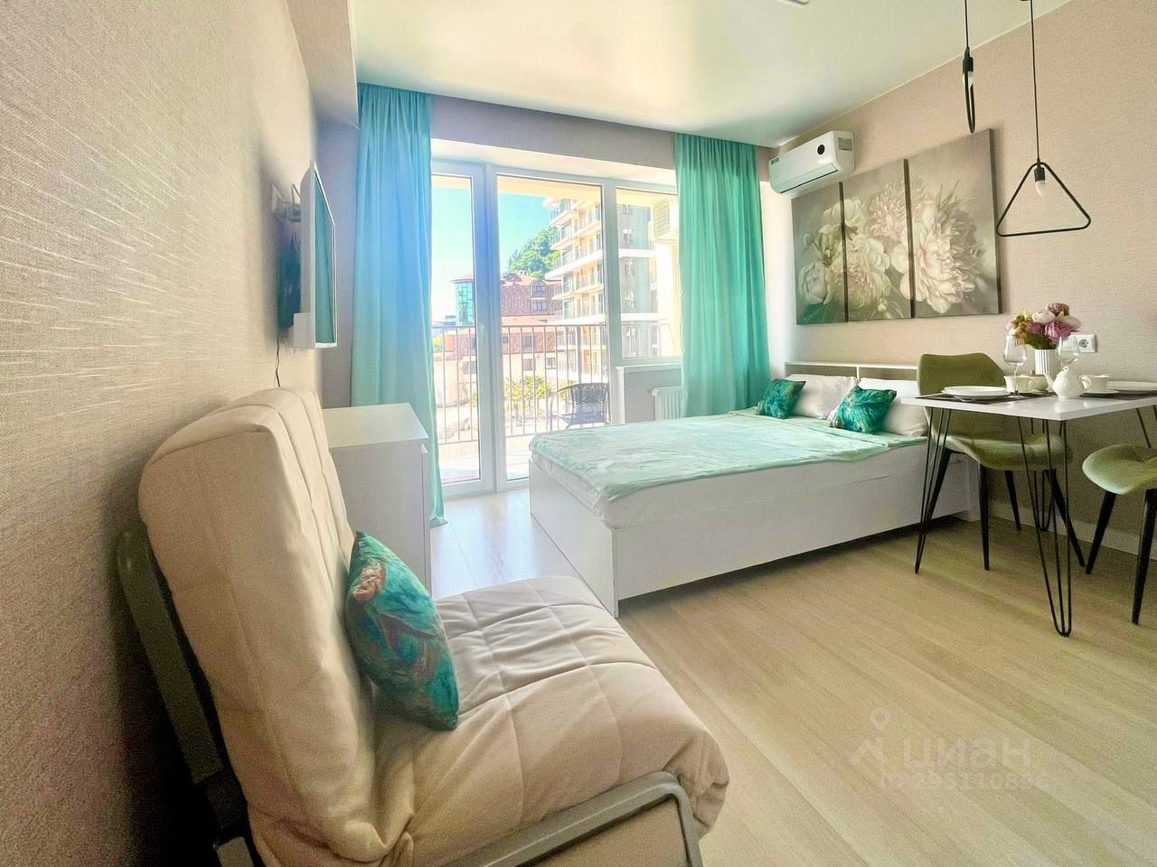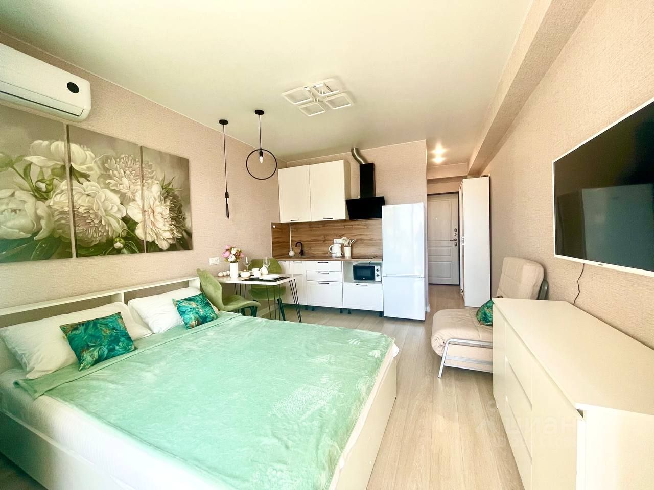 - Гостиная зона: новая двуспальная кровать, кресло-кровать, комод, плазменный телевизор, WiFi, кондиционер, утюг, гладильная доска. Постельное бельё включено в стоимость. Ванная комната: душевая кабина, махровые полотенца по количеству гостей, сушилка для белья, фен, полотенцесушитель, стиральная машина. Кухонная зона: микроволновая печь, электрическая плита, вытяжка, электрический чайник, кухонный стол, все необходимые столовые приборы и посуда. Балкон с уличной мебелью с видом на 10 корпус