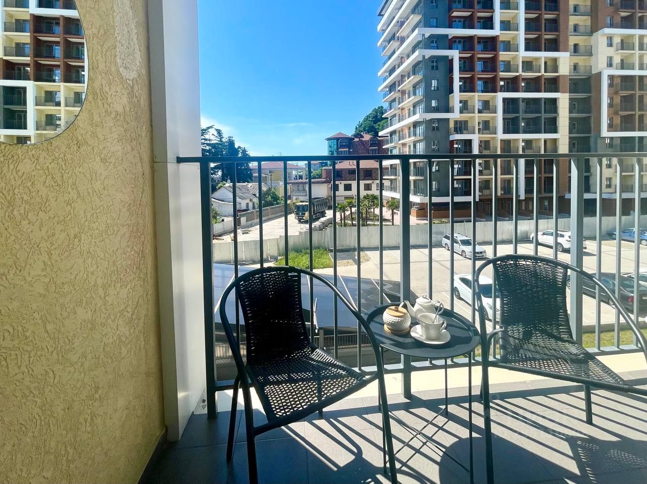 Квартира на 4 этаже полностью укомплектована современной мебелью, бытовая техника и принадлежности, имеется все необходимое для комфортного отдыха, включая Wi-Fi, постельное белье, полотенца, посуду и многое другое. Просторный балкон с обеденной группой. Великолепный вид на море и горы.