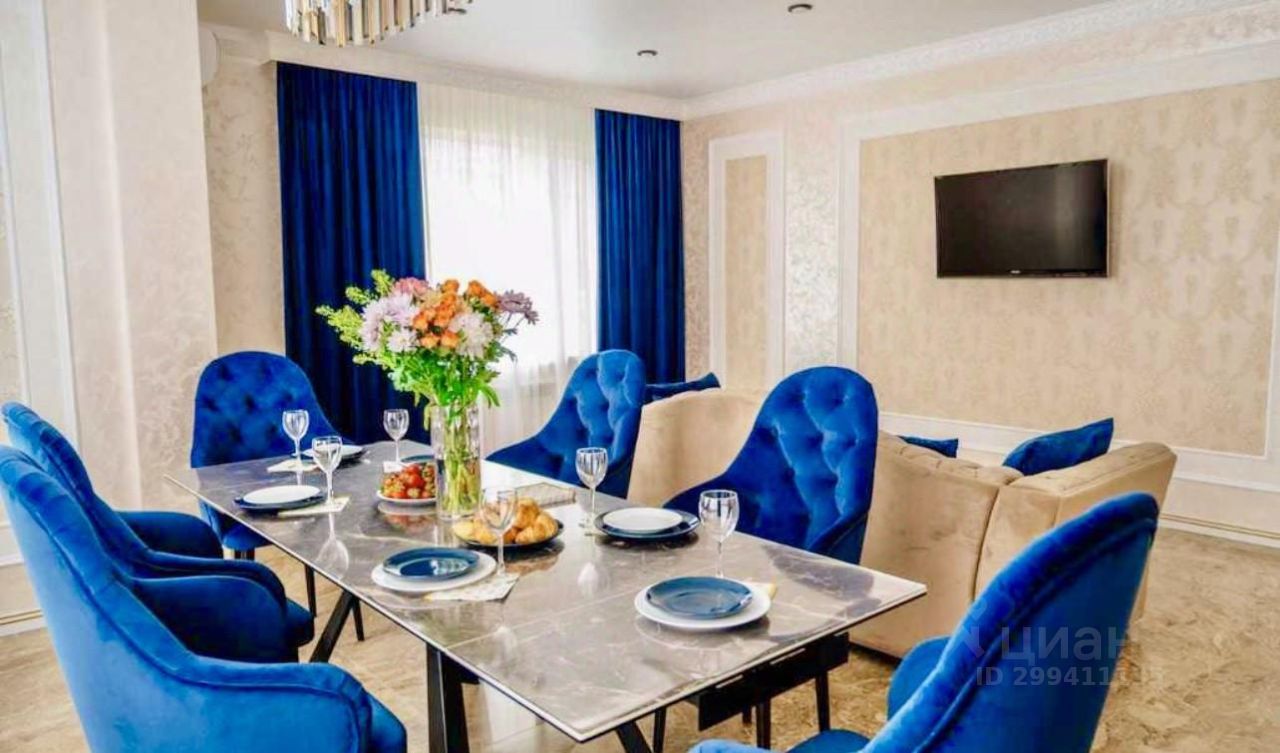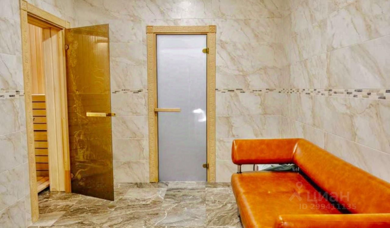 На первом этаже расположена вторая гостиная с мягким диваном и большим тв, мини-кухня, спальня (36 кв.м) с санузлом.