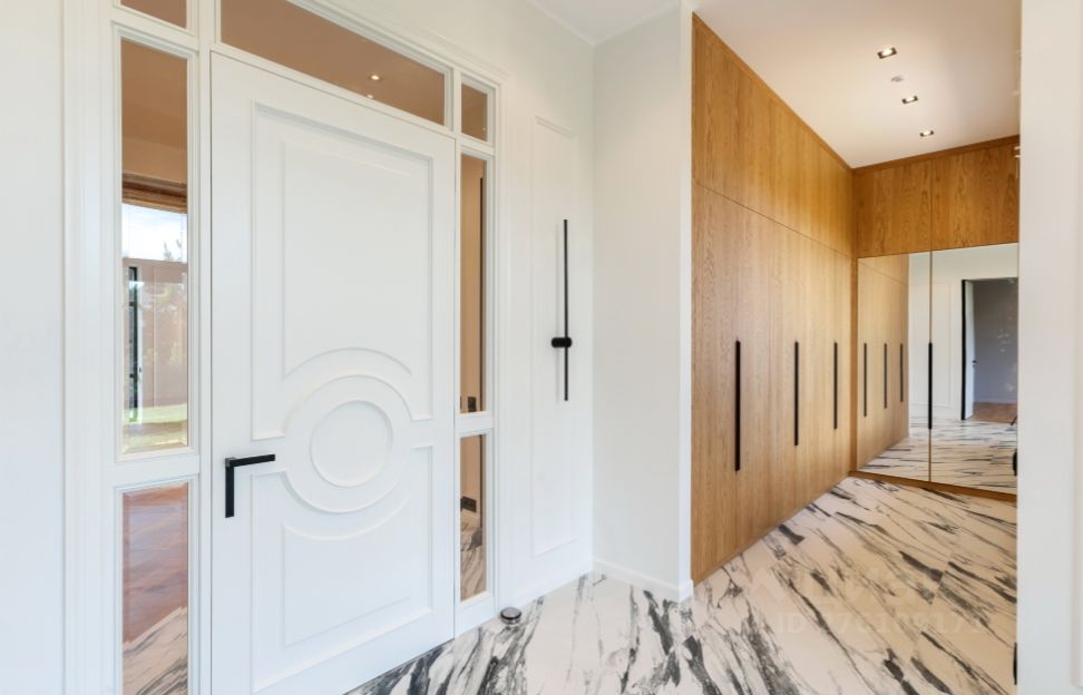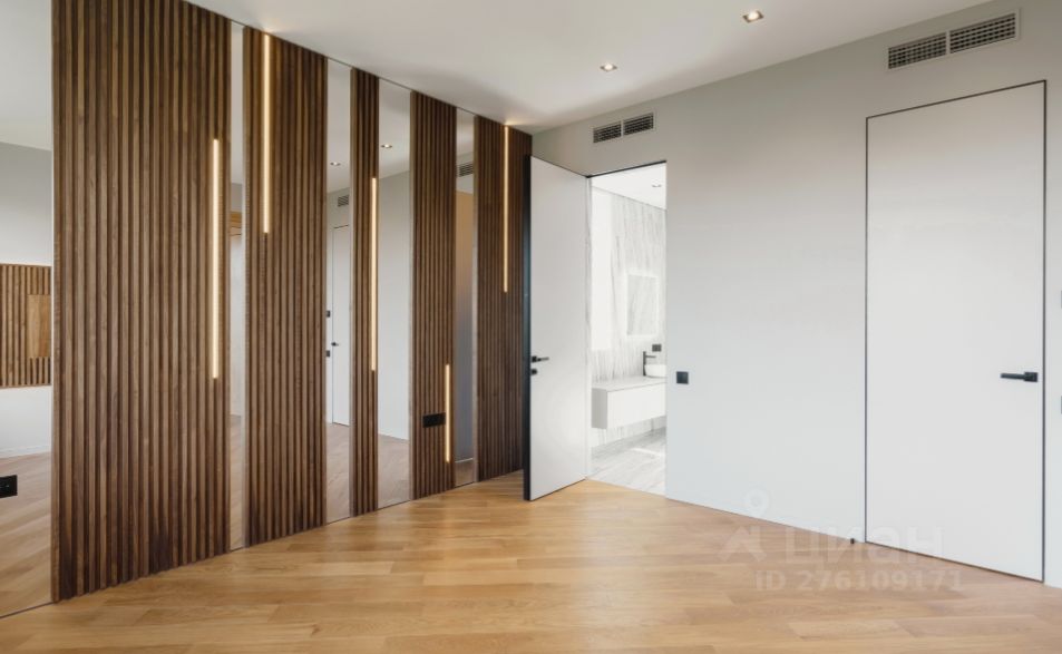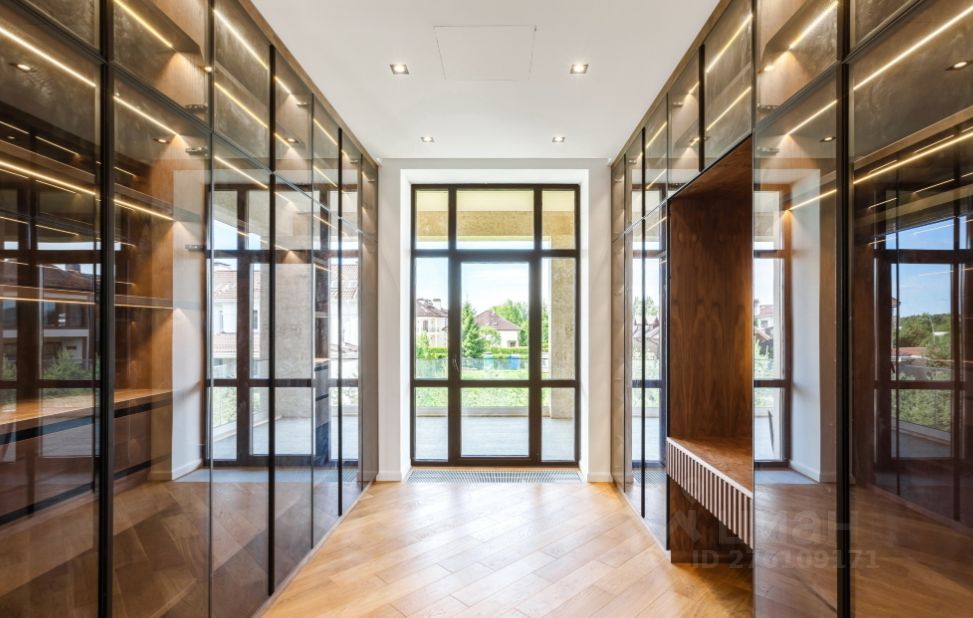 Описание дома Современный дом с большим панорамными окнами с красивыми видами на шикарном участке. Дом построен по авторскому проекту в приватной части поселка, на тупиковой улице рядом с великолепным ландшафтным парком. В доме отличная планировка: все спальни просторные, имеют собственные выходы на террасы, и выполнены как отдельные блоки, которые включают ванную комнату и гардеробную. Выполнена система приточно-вытяжной вентиляции и кондиционирования. Гараж на 2 а/м с квартирой для персонала с отдельным входом с улицы. Крытая парковка на 2 а/м.
