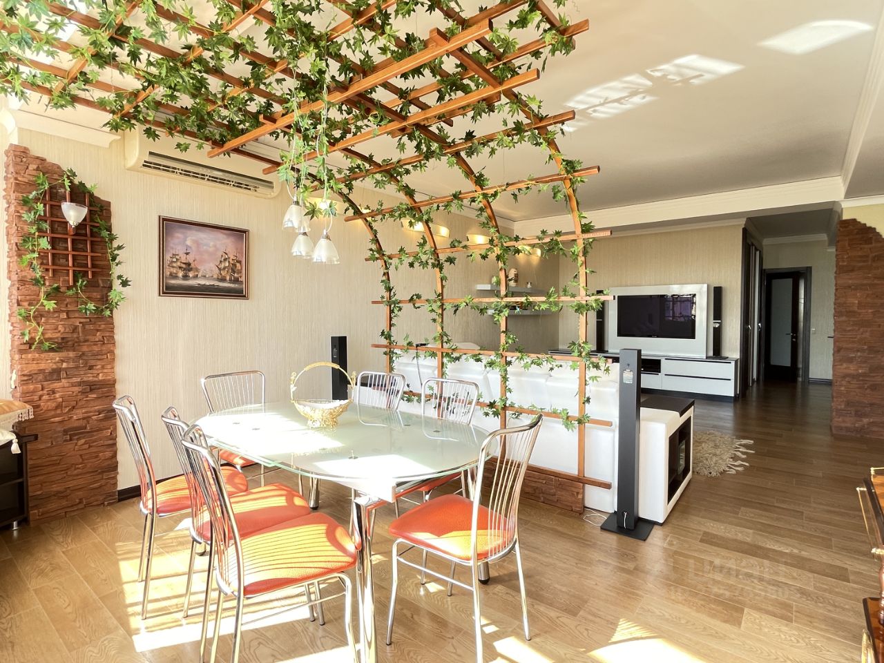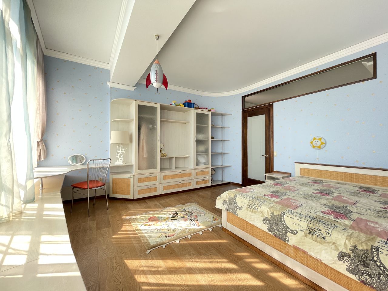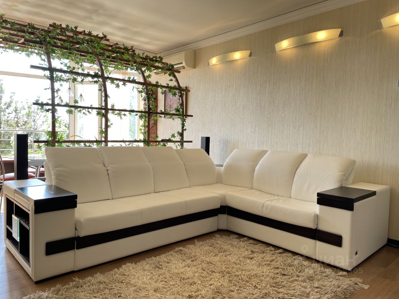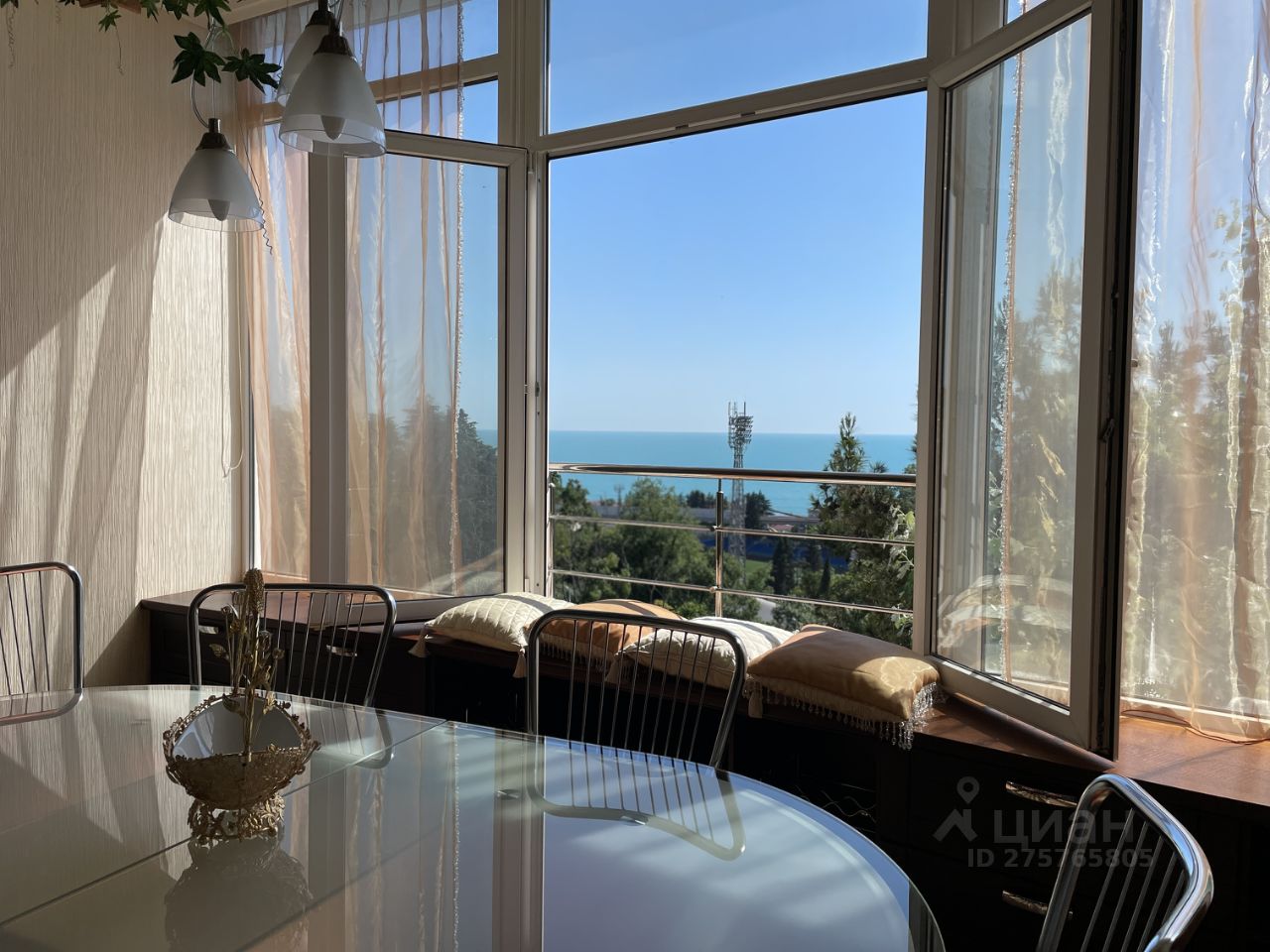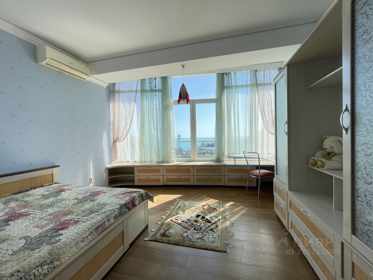 Гостиная поделена на две зоны - обеденную и зону отдыха. В обеденной зоне большой стол, большие окна с французским балконом и видом на море. В гостиной большой удобный диван с домашним кинотеатром. Раздельный сан. узел. В ванной комнате большая удобная ванна. Туалет оборудован биде. В прихожей два вместительных шкафа.