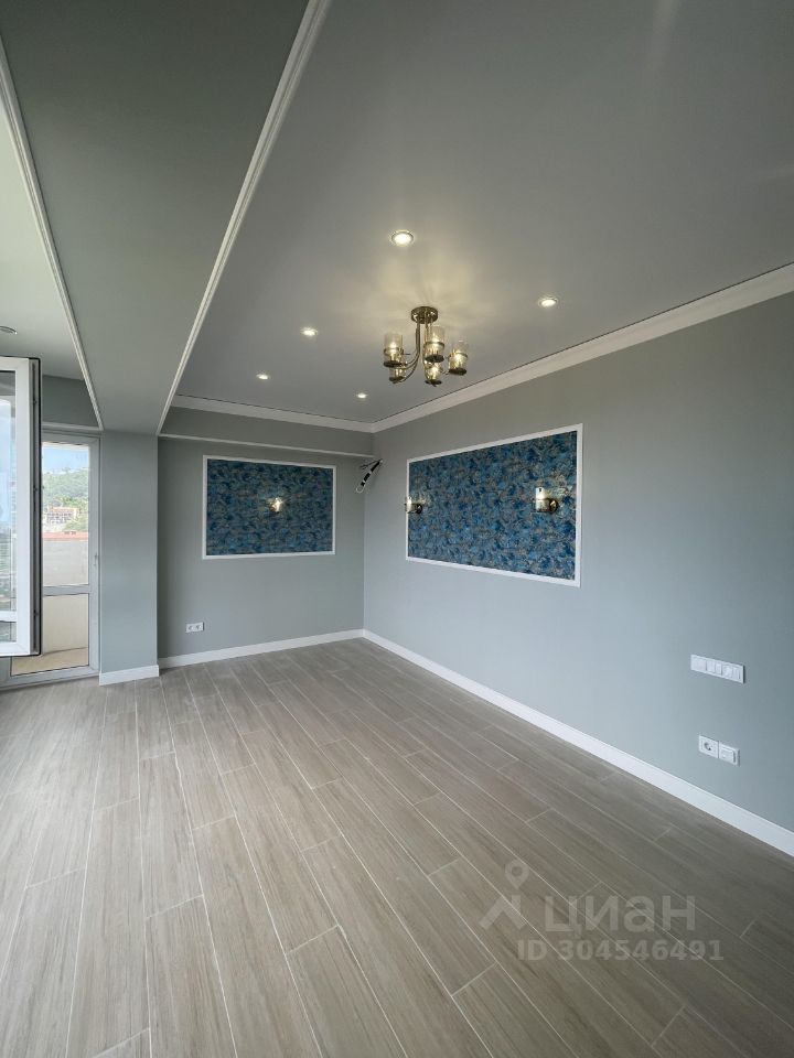 Продается стильная двухкомнатная квартира в Сочи, микрорайон Донская, на улице Гончарова, дом 3/1. Общая площадь квартиры составляет 51,2 кв. м, расположена она на 11-м этаже 12-этажного монолитного дома, построенного в 2021 году. Высота потолков — 2,7 метра.